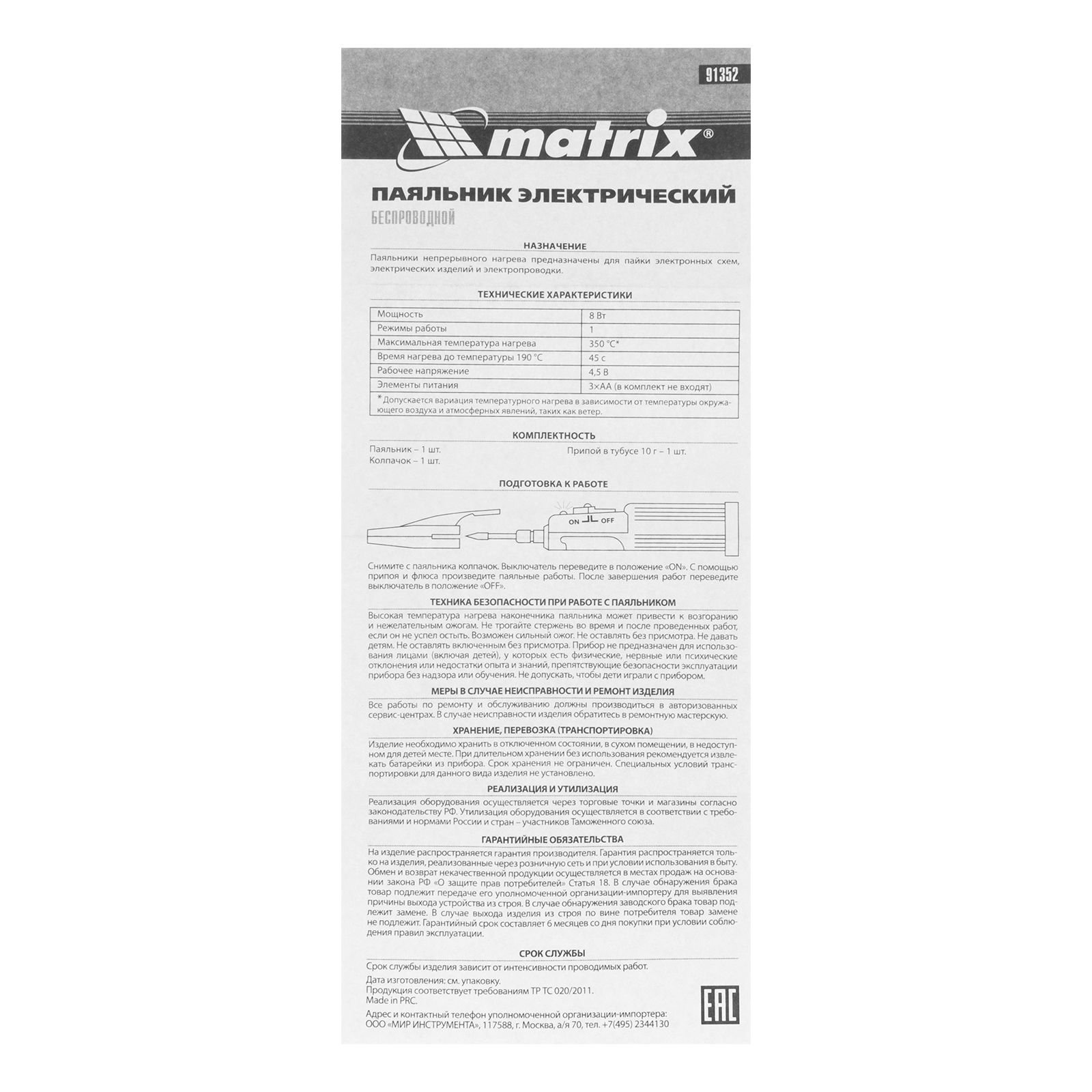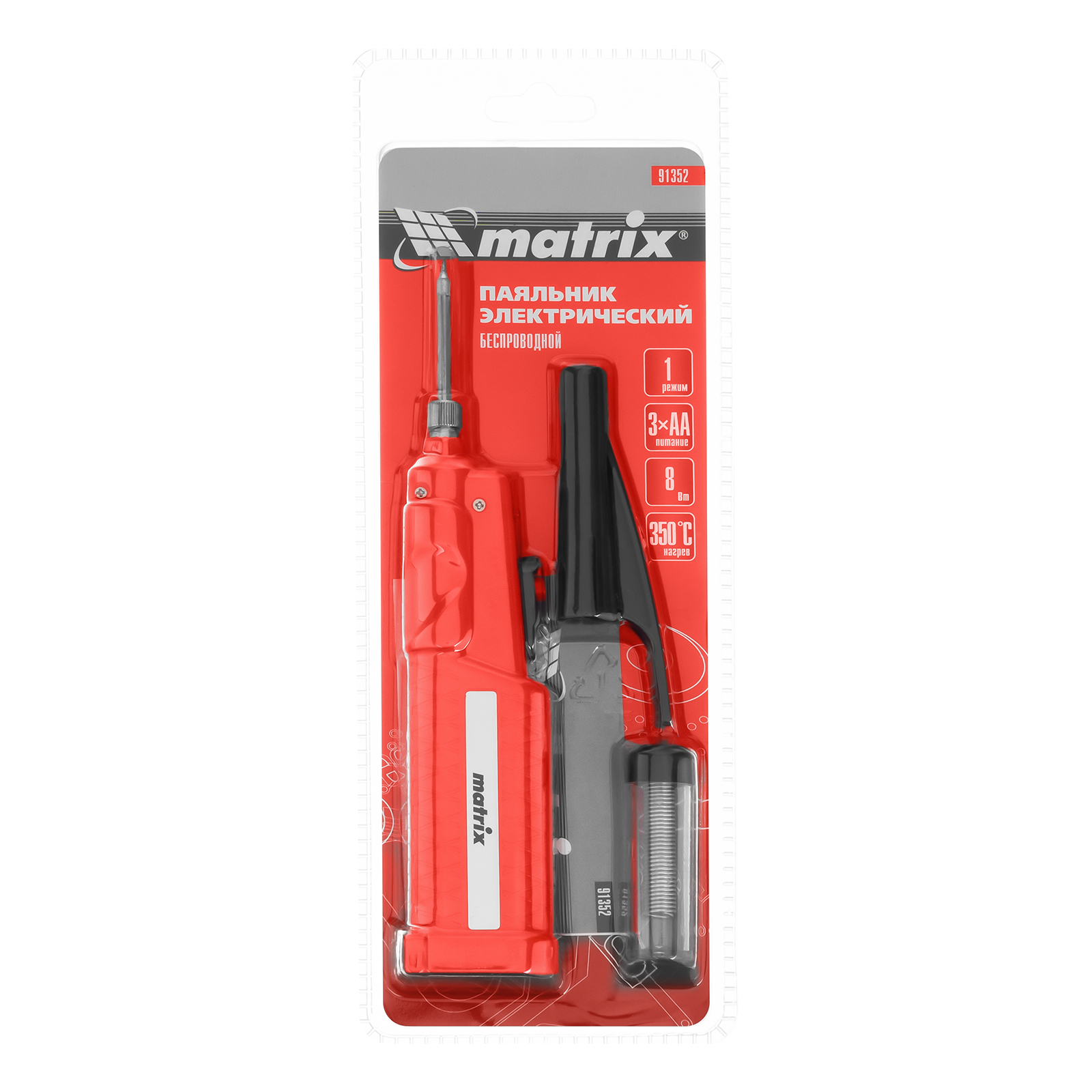 Паяльник беспроводной 4.5 В, 8 Вт, 350°С, припой 10 г, работа от элементов питания 3хАА Matrix в Краснодаре