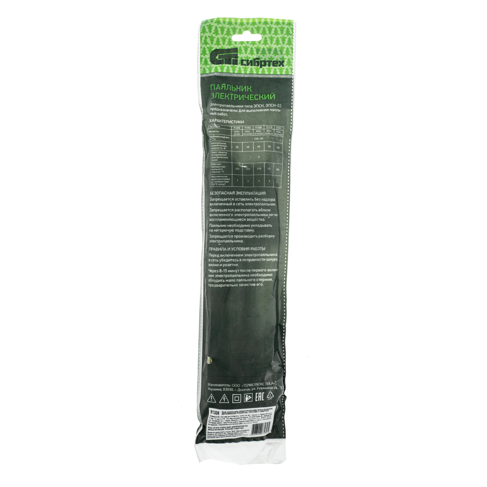 Электрический паяльник Сибртех ЭПСН-03-65/220 91308 с деревянной ручкой используется для пайки электросхем, проводов, небольших деталей. Мощность инструмента составляет 65 Вт, поэтому он успешно справляется с поставленными задачами. Паяльник используют для ремонта бытовой и радиотехники, а также во время обслуживания автомобилей.