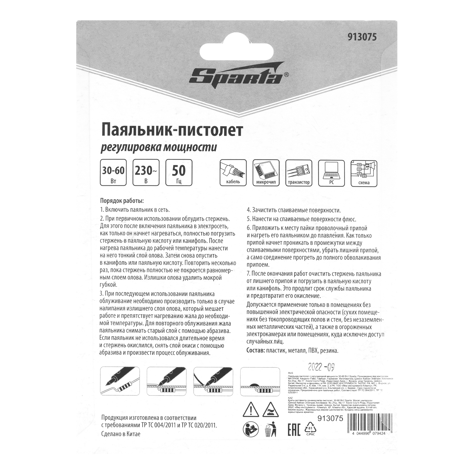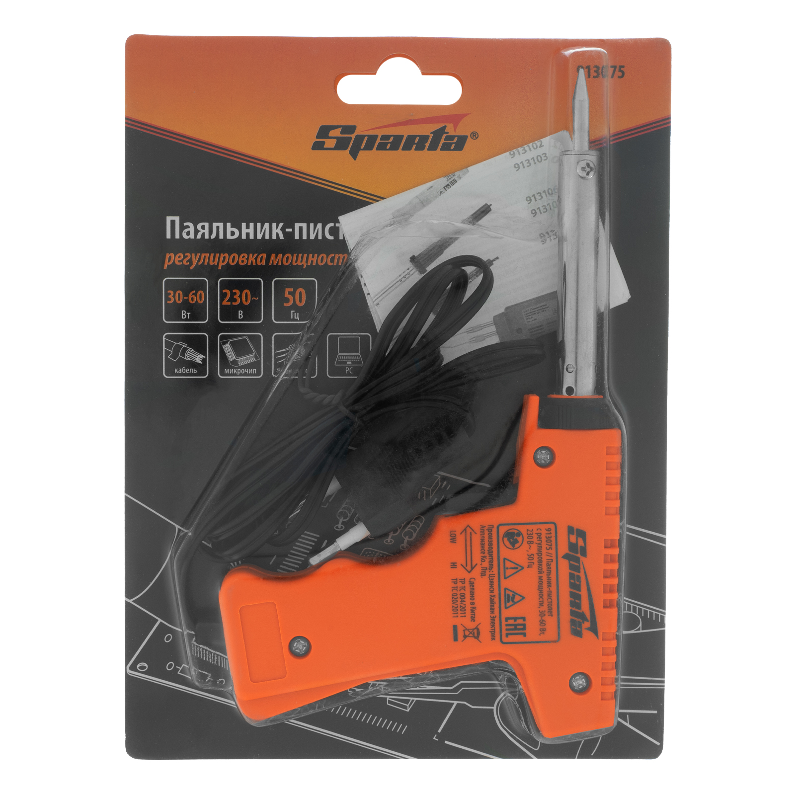 Паяльник-пистолет с регулировкой мощности 30-60 Вт, 220 В Sparta в Краснодаре