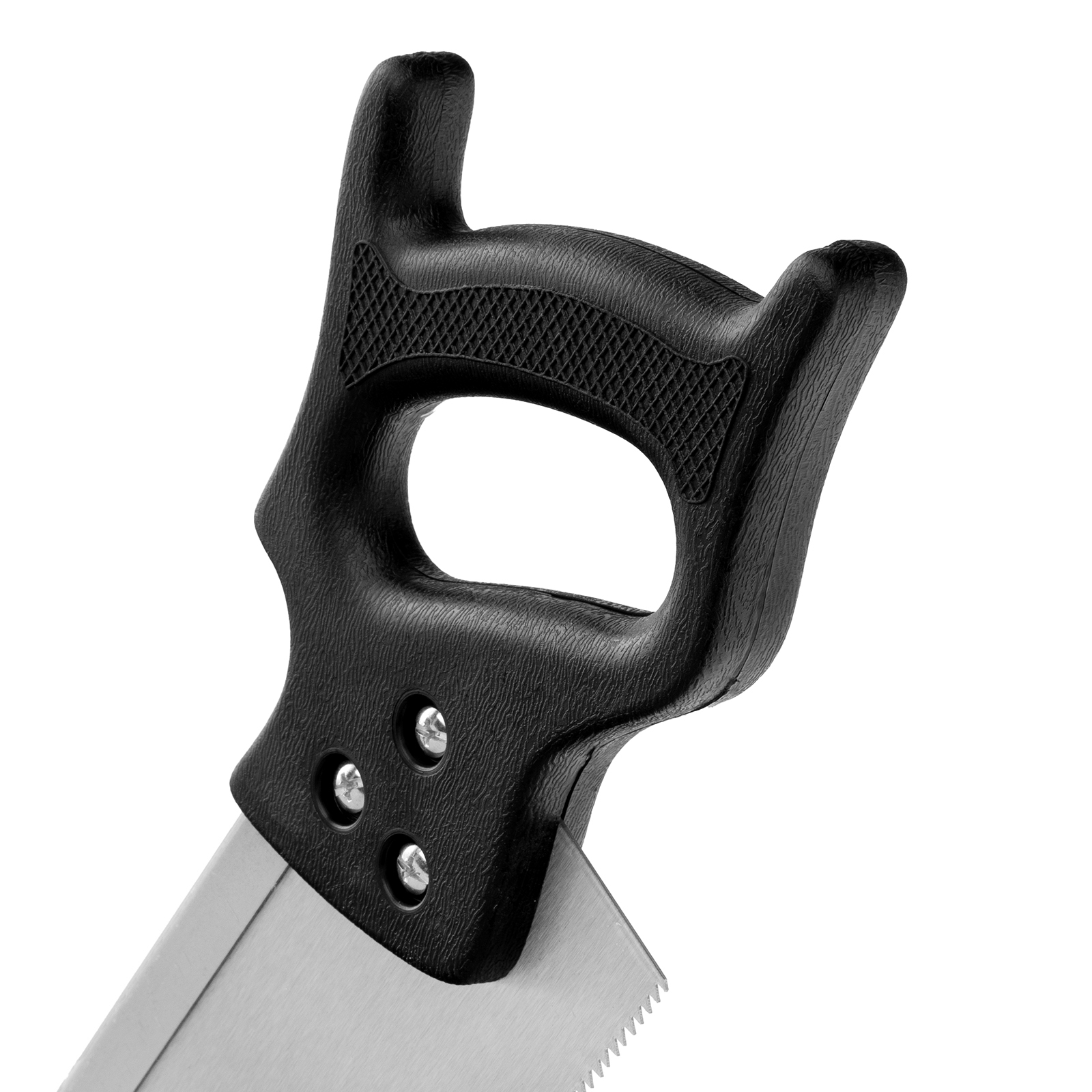 Обушковая пила для стусла Sparta 231515 с полотном длиной 350 мм используется для распиливания под углом заготовок из древесины, фанеры или ДСП. Пилить можно вдоль или поперек волокон. В верхней части полотна имеется ребро жесткости, которое не дает ему сгибаться. Шаг зубьев составляет 7-8 TPI, что обеспечивает быстрый рез. Допускается переточка режущей кромки. Инструмент применяется во время выполнения столярных работ.
