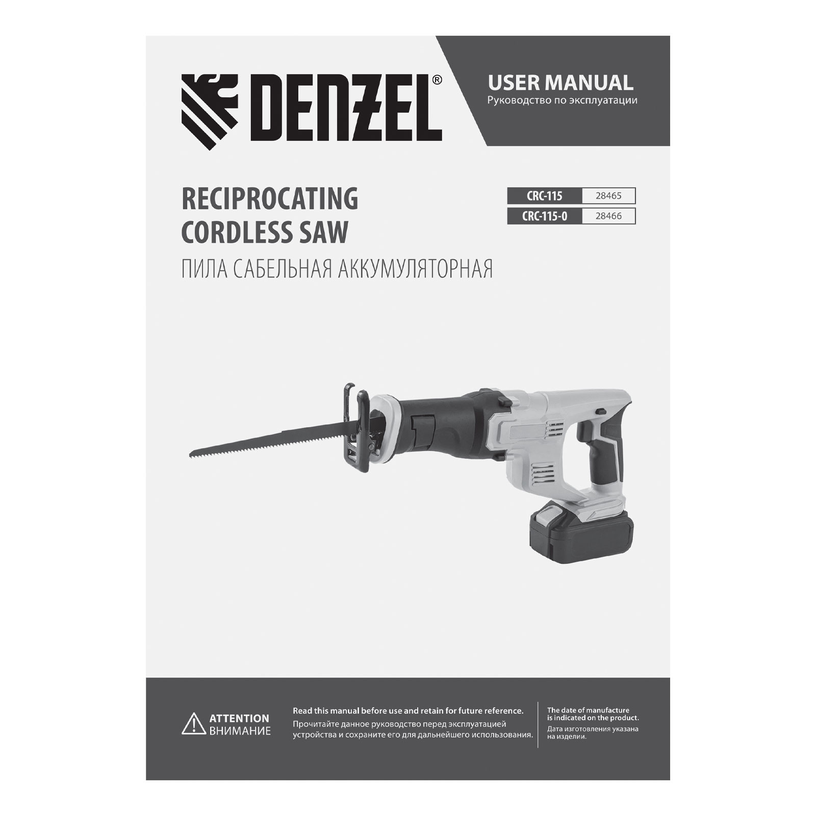 Пила сабельная аккумуляторная CRC-115, 18В Li-Ion Denzel в Краснодаре
