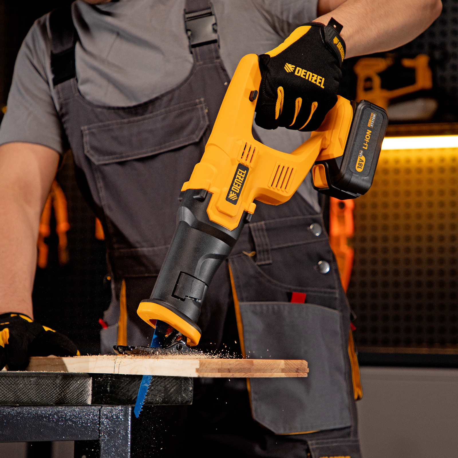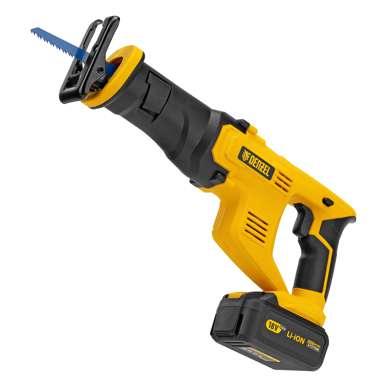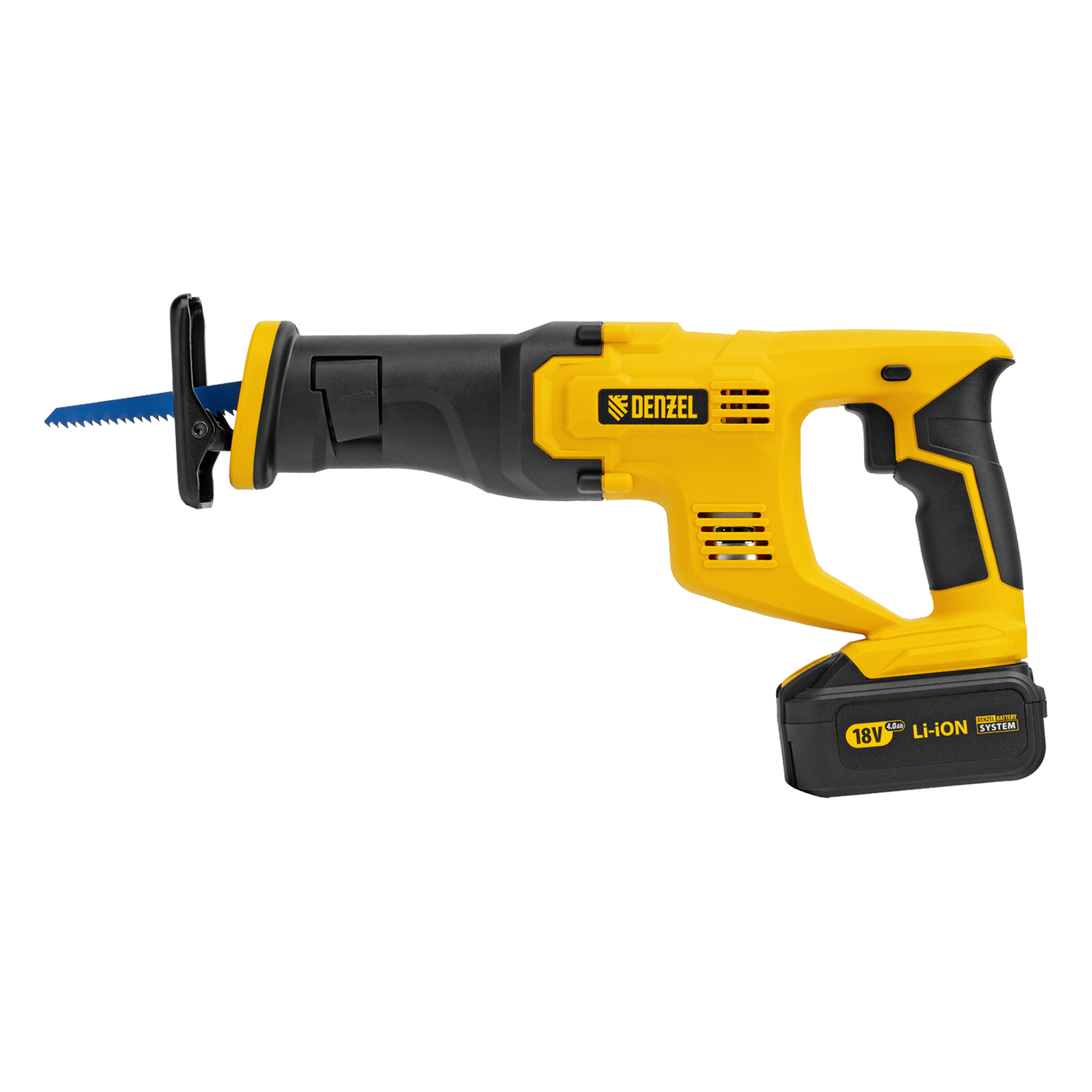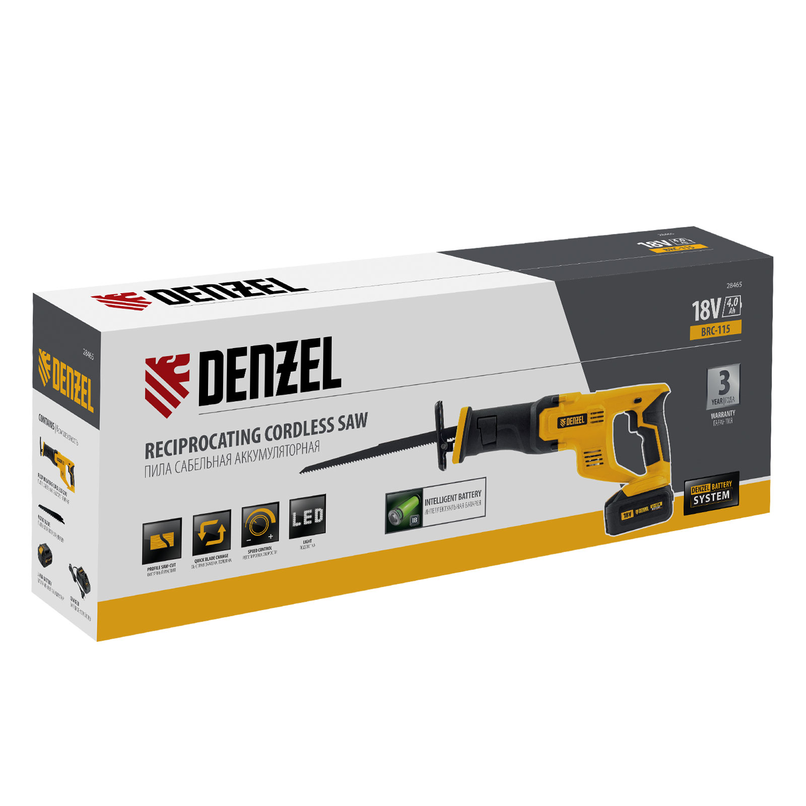 Сабельная аккумуляторная пила Denzel CRC-115 28465 работает от аккумулятора Li-Ion с рабочим напряжением 18 В. Предназначена для распила фанеры, досок, ДСП, ДВП, пластика, а также для обрезки веток. Максимальная глубина пропила в древесине составляет 115 мм, в стали — 10 мм. Оснастка совершает до 3000 ходов в минуту, что обеспечивает эффективную работу. ,Универсальный аккумулятор емкостью 4 А/ч, с интеллектуальной системой распознавания нагрузки, рассчитан на длительный срок службы. Он совместим со всеми инструментами единой платформы Denzel battery system 18V серии IB.