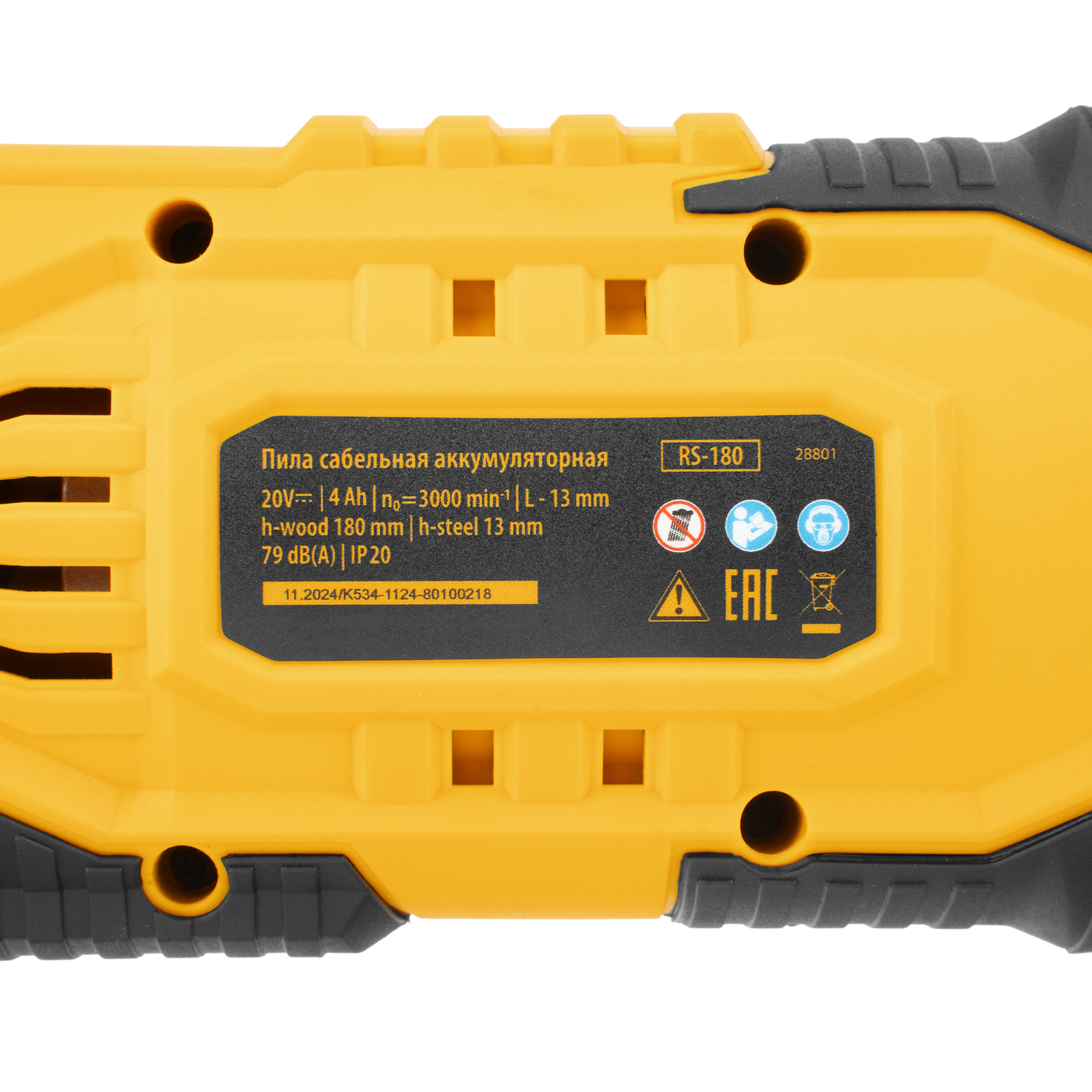 Пила сабельная аккумуляторная RS-180, Li-Ion, 20 В Denzel в Краснодаре