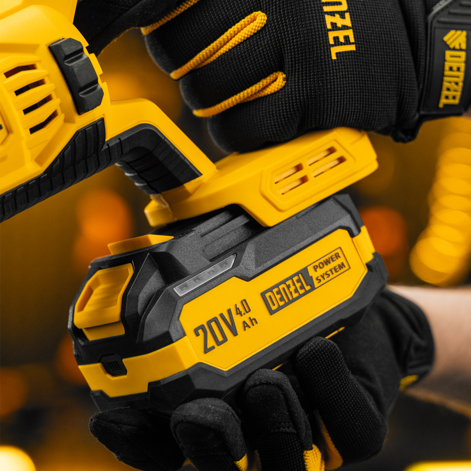 - Универсальность — аккумулятор совместим со всеми инструментами единой платформы Denzel Power System 20V.