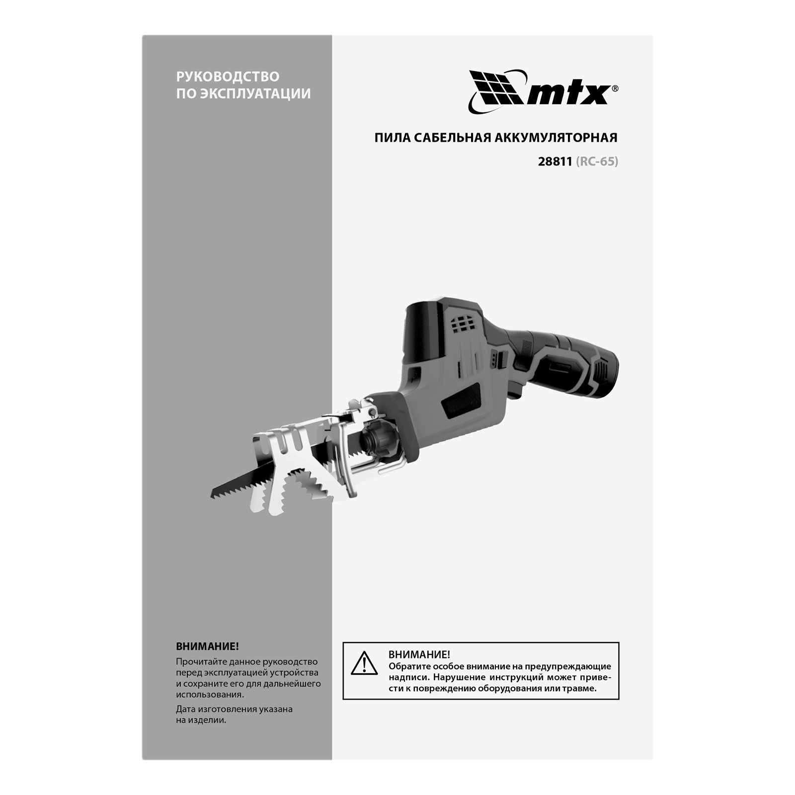 Пила сабельная аккумуляторная RС-65, Li-Ion, 12 В MTX в Краснодаре