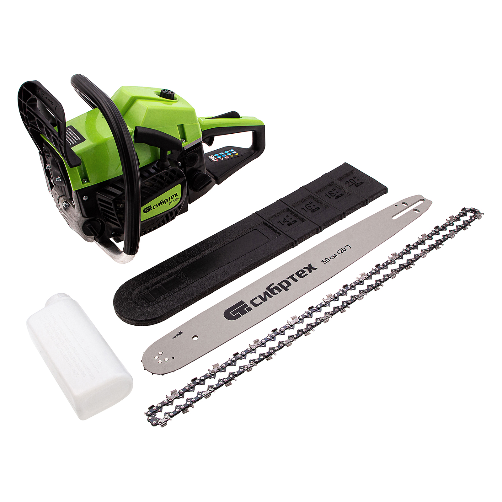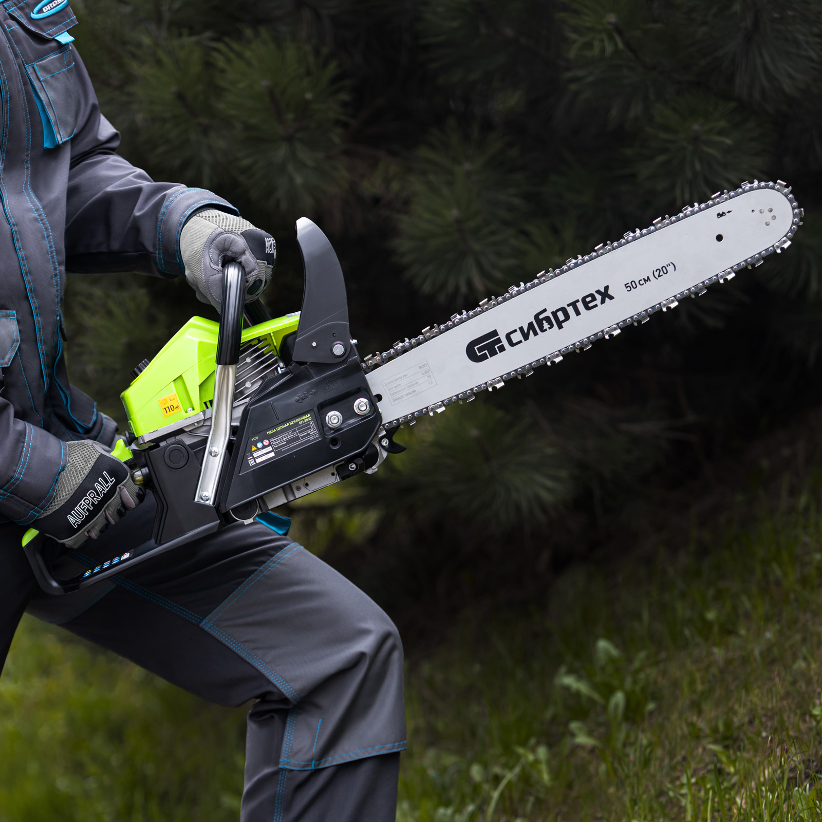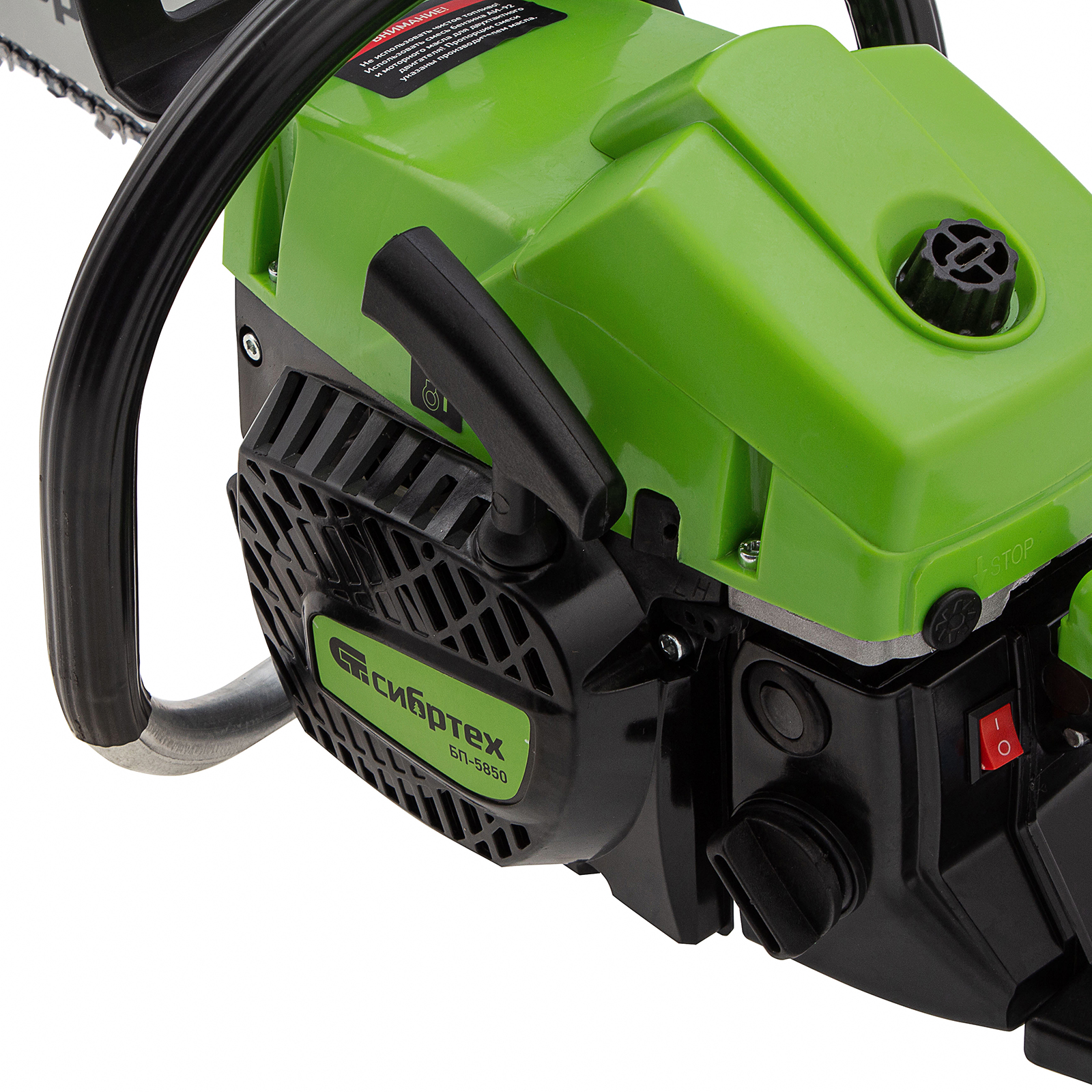 Пила цепная бензиновая Сибртех БП-5850 95210 с двухтактным двигателем объемом 58 см3 и мощностью 3,9 л.с предназначена для распиловки древесины различных пород, заготовки дров, спиливания веток и крупных сучков. Пригодится во время ремонта, строительства, благоустройства садового участка и при выполнении бытовых задач. Мощный и экономичный двигатель в сочетании с качественной шиной длиной 50 см (цепь с 76 звеньями с шагом 0,325 дюйма и шириной паза 1,5 мм) позволяют достичь наилучших результатов да.