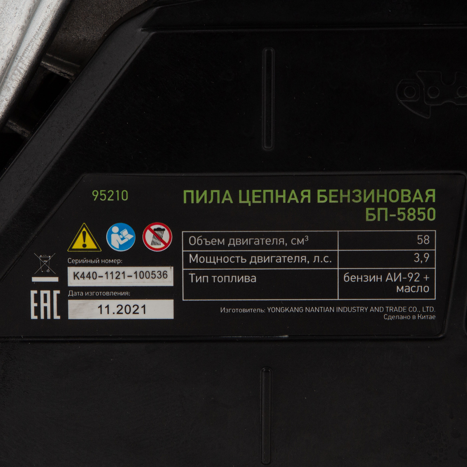 Пила цепная бензиновая БП-5850, 58 см3, шина 50 см, шаг 0.325, паз 1,5 мм, 76 звеньев Сибртех в Краснодаре