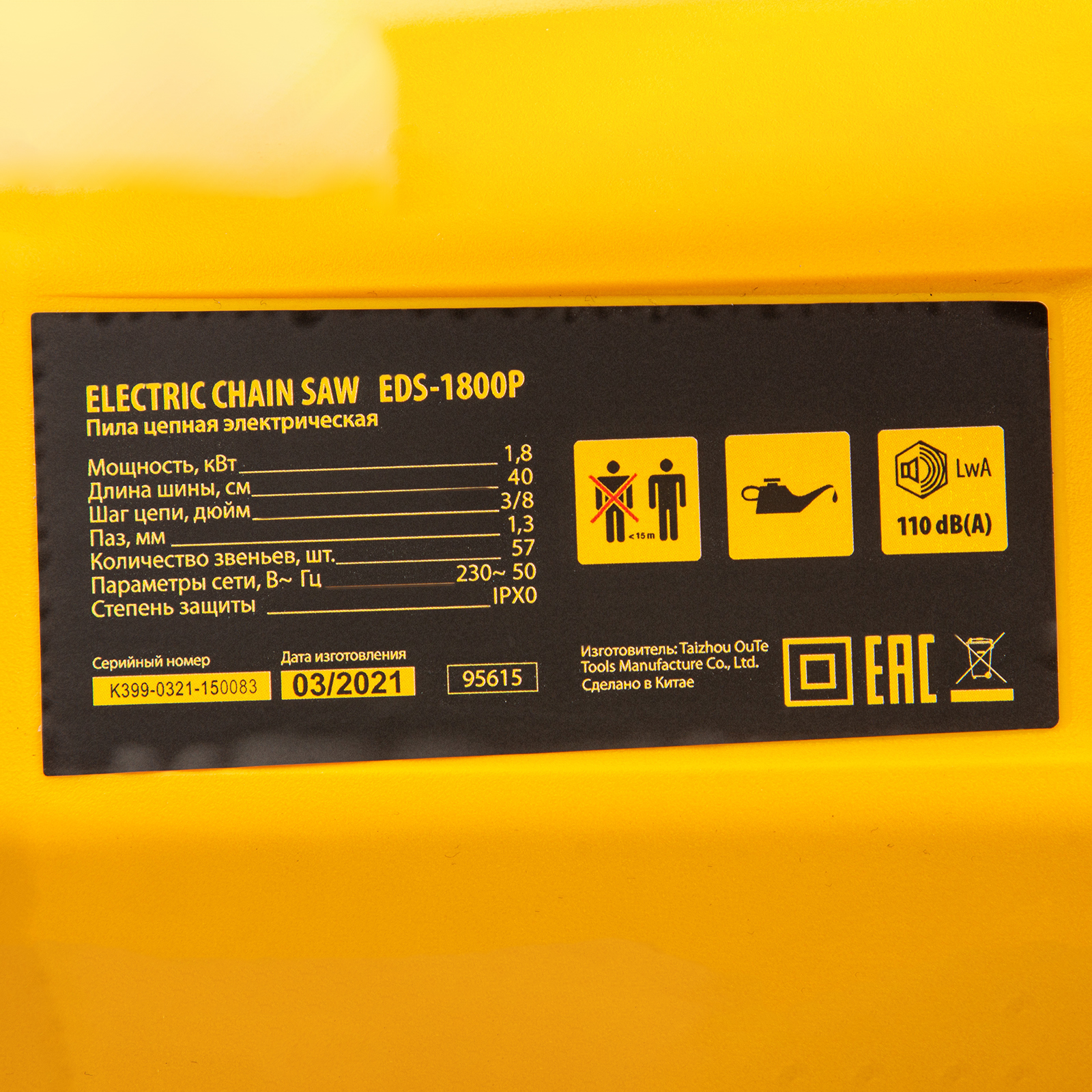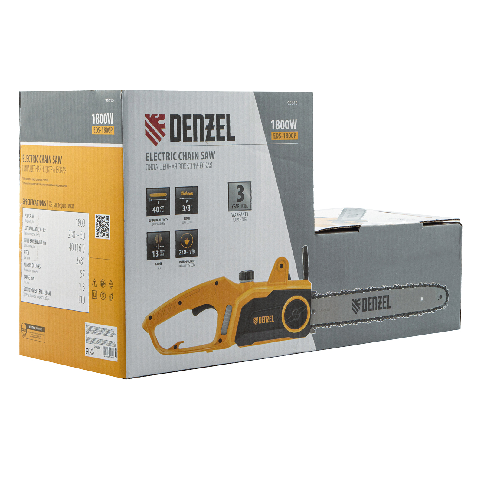Пила цепная электрическая EDS-1800P, 1.8 кВт,поперечная, шина 40 см, шаг 3/8, паз 1.3 мм, 57 звеньев Denzel в Краснодаре
