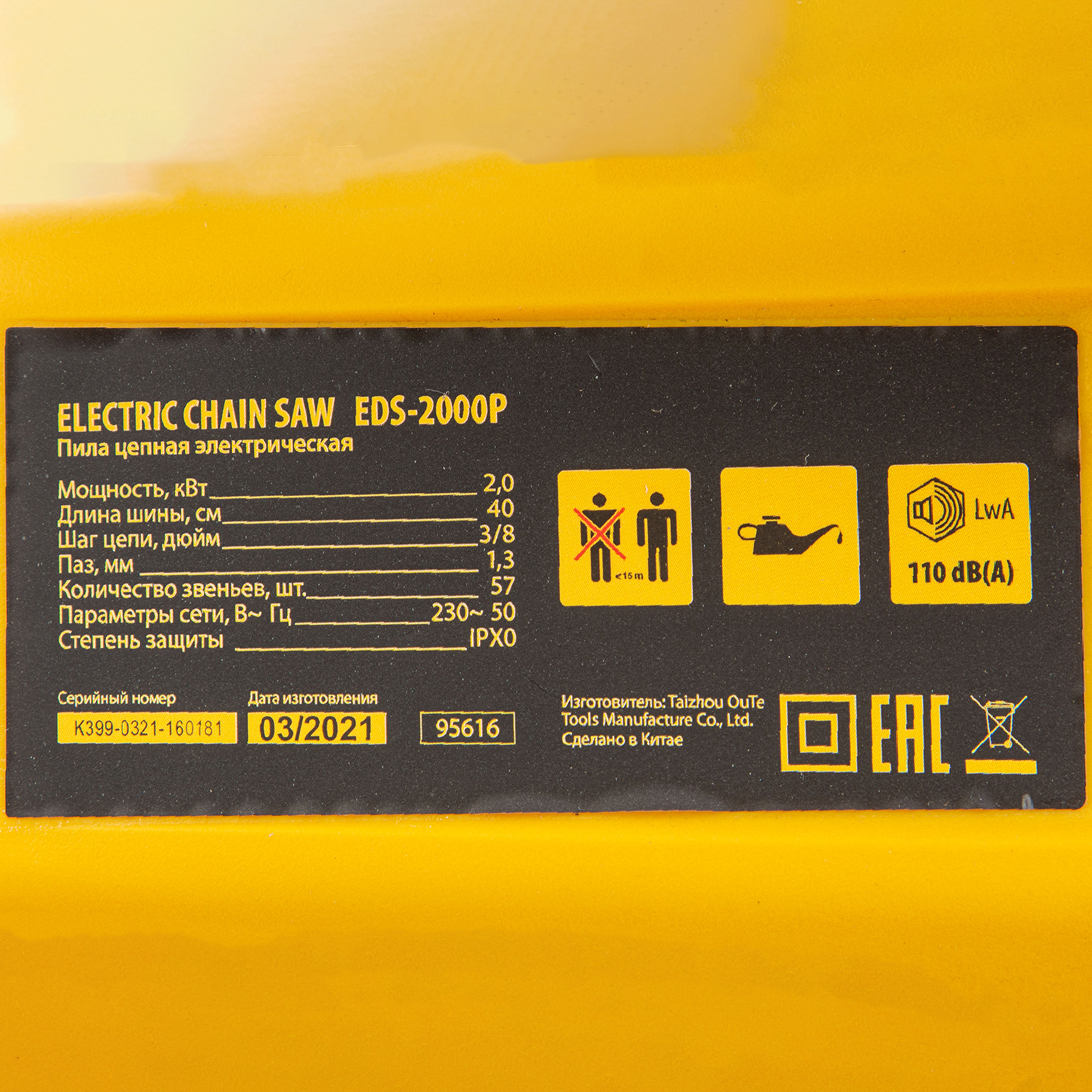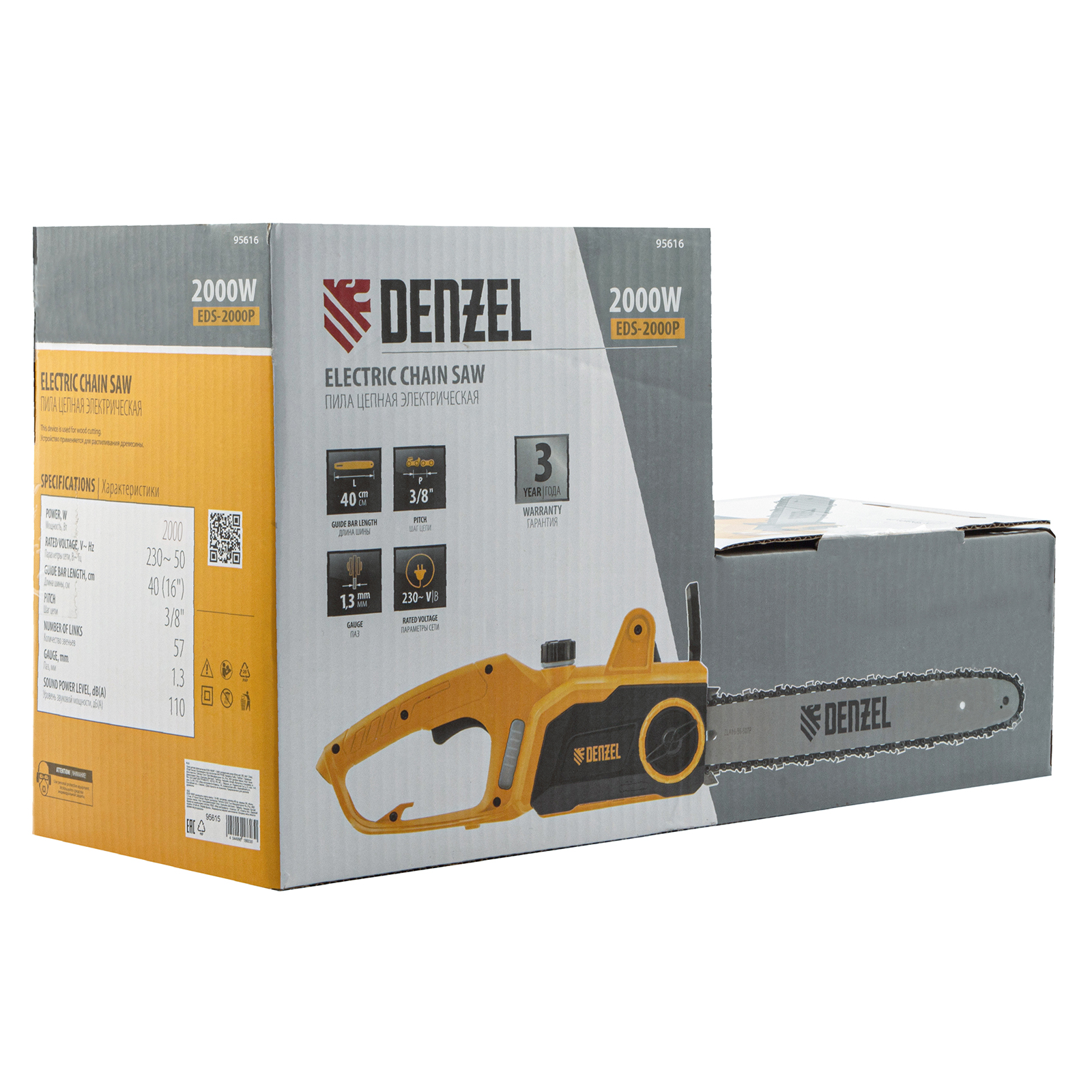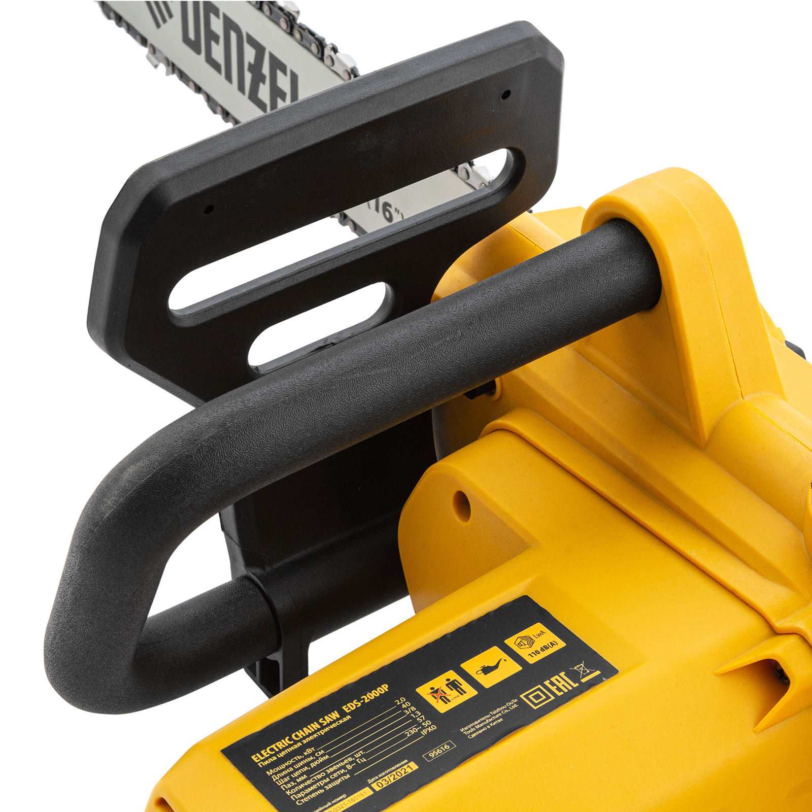 Пила цепная электрическая EDS-2000P, 2 кВт,поперечная, шина 40 см, шаг 3/8, паз 1.3 мм, 57 звеньев Denzel в Краснодаре