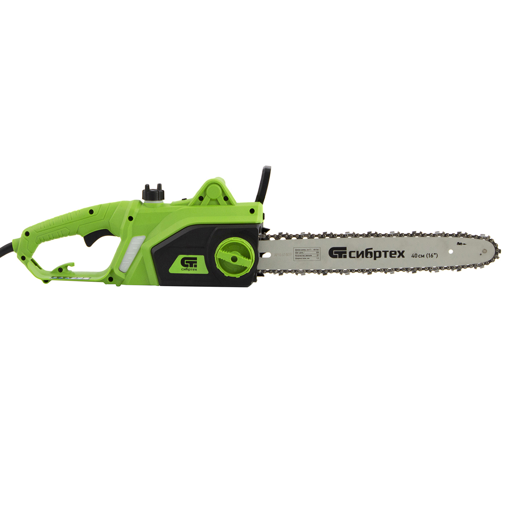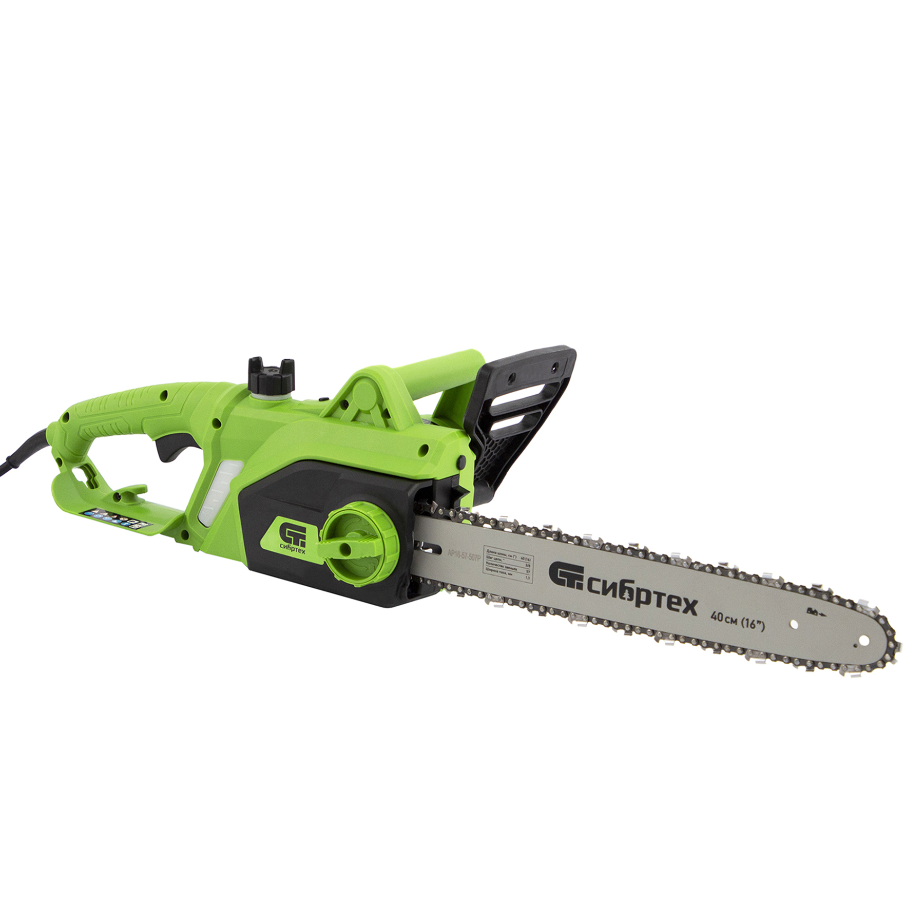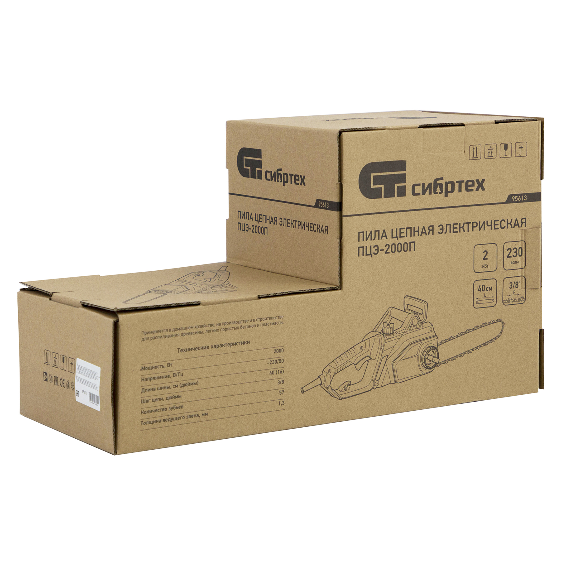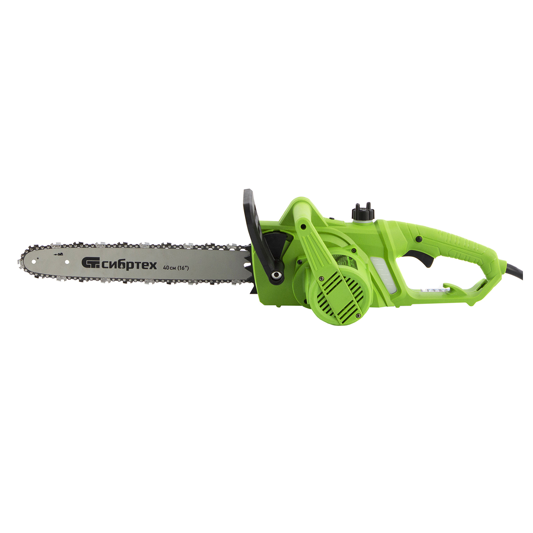 Электрическая цепная пила Сибртех ПЦЭ-2000П 95613 мощностью 2,0 кВт, с поперечным двигателем, комплектуется шиной длиной 16'' (40 см). Скорость движения цепи 13,5 м/с позволяет эффективно справляться с распилом деревянных заготовок, благоустройством дачного участка, ремонтом и частным строительством.,Пила абсолютно экологична, потому что не производит выхлопов в окружающую среду. Электродвигатель экономит время на техническое обслуживание — не нужно готовить топливную смесь и беспокоиться о ее количестве в баке. Инструмент отличается низким уровнем шума по сравнению с бензиновыми моделями, поэтому мастеру будет комфортно работать как на открытых участках, так и в помещениях.