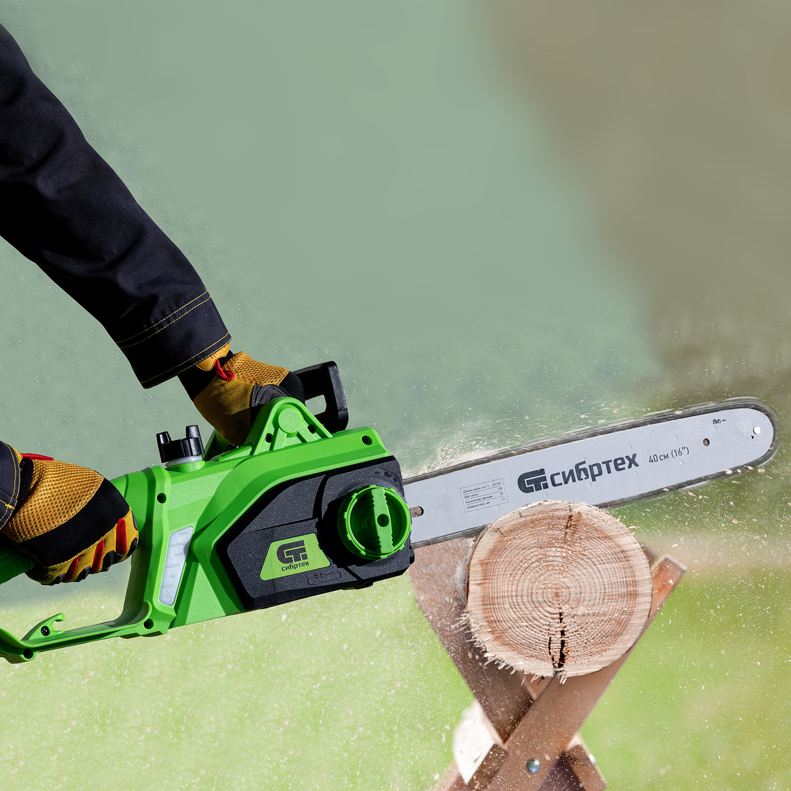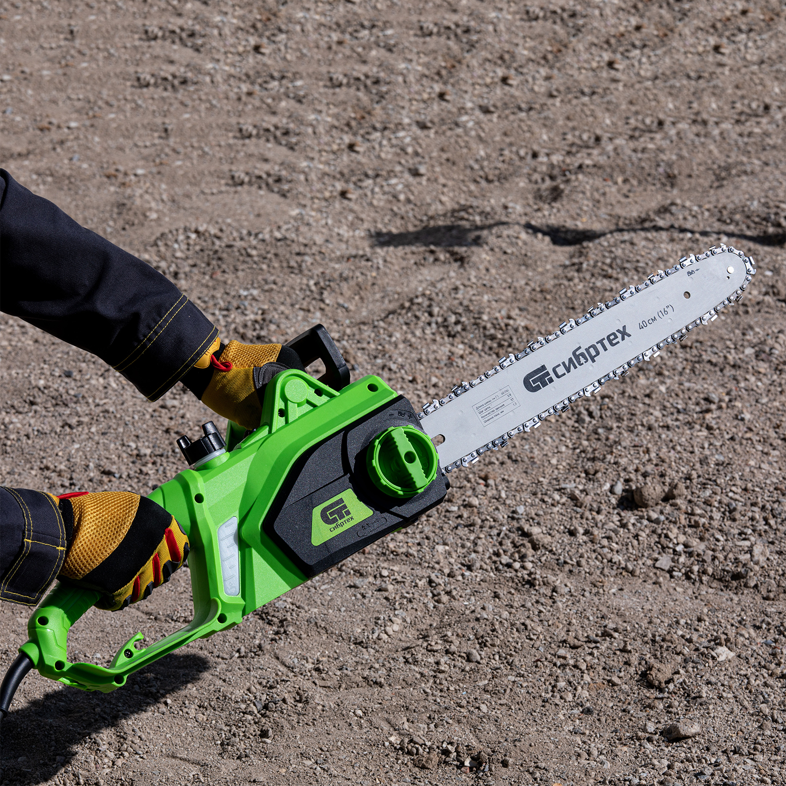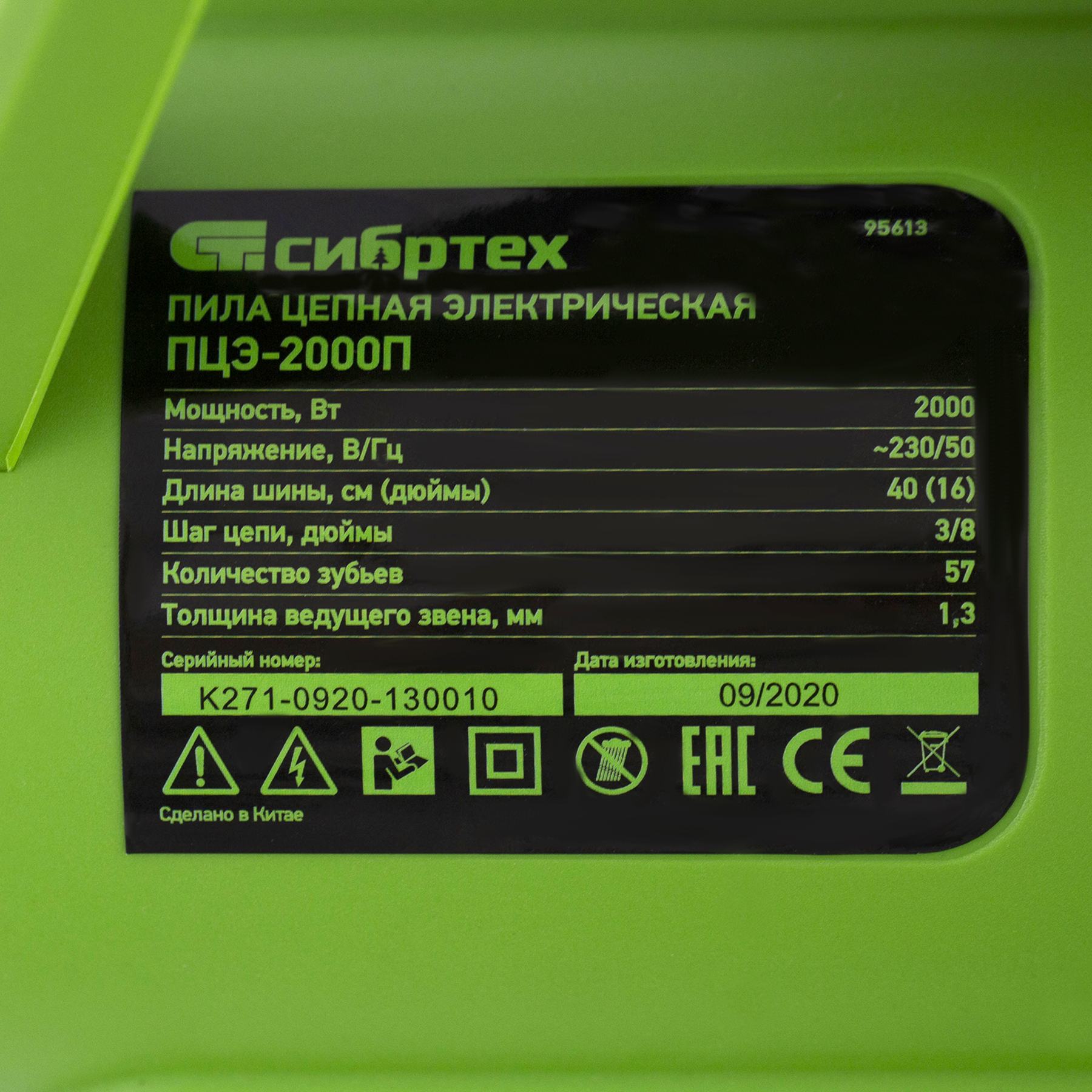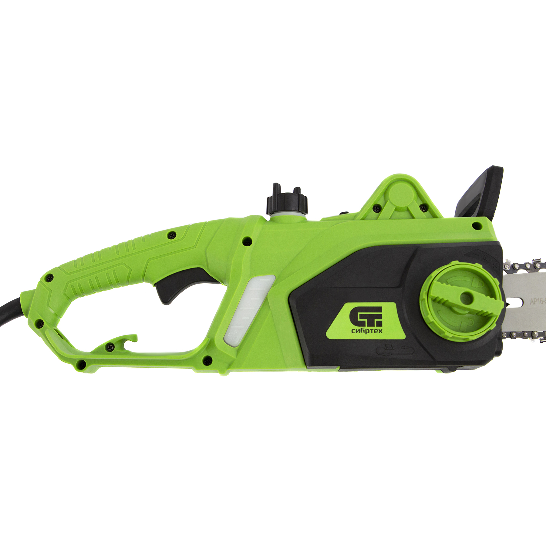 Электрическая цепная пила Сибртех ПЦЭ-2000П 95613 мощностью 2,0 кВт, с поперечным двигателем, комплектуется шиной длиной 16'' (40 см). Скорость движения цепи 13,5 м/с позволяет эффективно справляться с распилом деревянных заготовок, благоустройством дачного участка, ремонтом и частным строительством.,Пила абсолютно экологична, потому что не производит выхлопов в окружающую среду. Электродвигатель экономит время на техническое обслуживание — не нужно готовить топливную смесь и беспокоиться о ее количестве в баке. Инструмент отличается низким уровнем шума по сравнению с бензиновыми моделями, поэтому мастеру будет комфортно работать как на открытых участках, так и в помещениях.