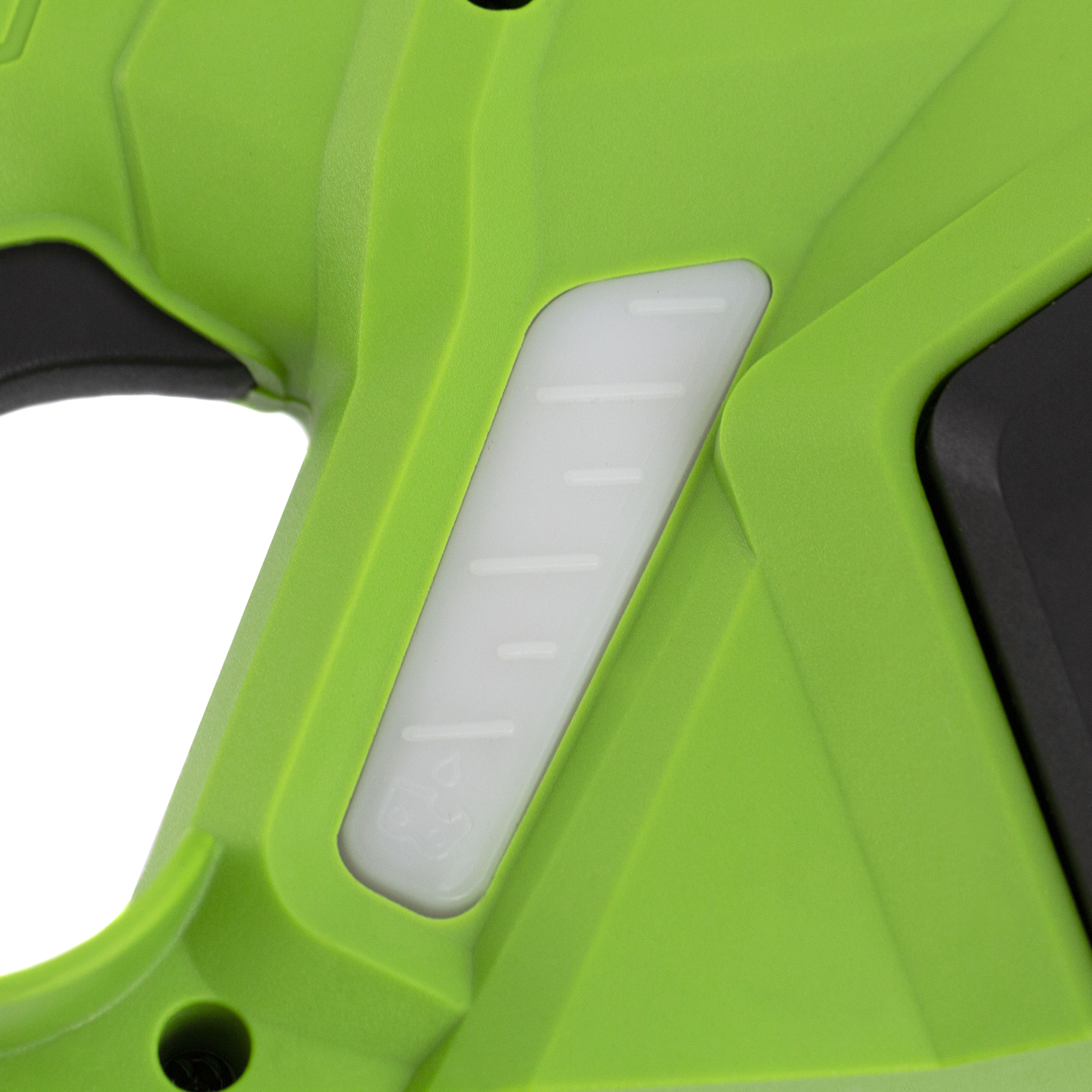 - Визуальный контроль — полупрозрачный масляный бак со смотровым окошком помогает отслеживать уровень масла и вовремя доливать его, обеспечивая сохранность ходовых деталей.