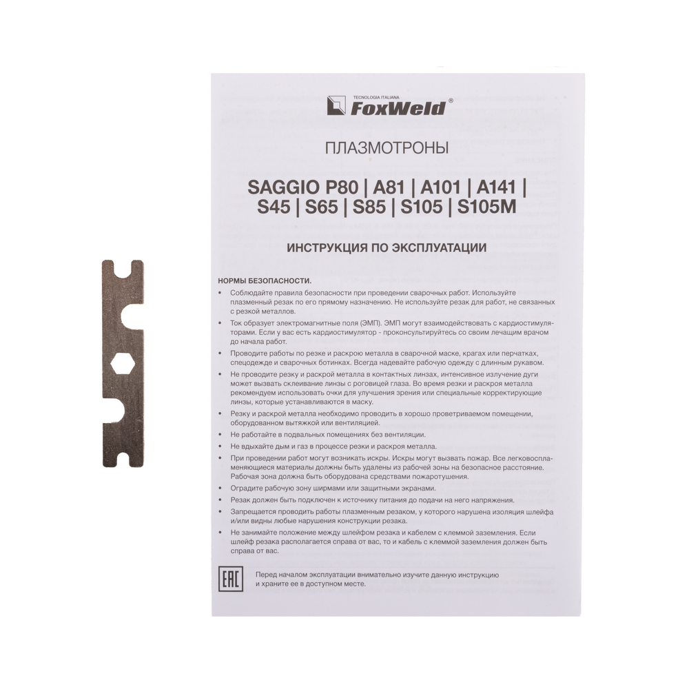 Плазмотрон SAGGIO S65 с пневматическим поджигом предназначен для полуавтоматической (ручной) воздушно-плазменной разделки металлических деталей и конструкций. Подключается к аппаратам воздушно-плазменной резки (Plasma CUT) через центральный адаптер. Плазмотрон комплектуется кабель-шлангом длиной 6 метров.ПНЕВМОКОНТАКТНЫЙ ПОДЖИГ: Благодаря совсем небольшому расстоянию между подвижным электродом и соплом пневматический поджиг гарантирует отсутствие электромагнитных помех, влияющих на работу электроники и станков с ЧПУ. Кроме того, данный тип поджига обеспечивает отличное качество реза.ТОЛЩИНА РЕЗА ДО 18 ММ: Благодаря высоким динамическим характеристикам дуги и стабильному току резки с помощью этой модели плазмотрона можно разрезать металл толщиной до 18 мм.ПРЕДОХРАНИТЕЛЬ КУРКА: Специальный предохранитель исключает случайное нажатие, препятствуя незапланированному включению плазмотрона, и повышает безопасность работы.ШАРНИРНОЕ СОЕДИНЕНИЕ: Шарнир между рукояткой плазмотрона и рукавом уменьшает нагрузку на руку и запястье, что даёт мобильность, гибкость, удобство вращения, и делает процесс сварки более удобным.ЭРГОНОМИЧНОСТЬ: Благодаря продуманному контурному дизайну, разработанному специально для удобного хвата, рукоятка плазмотрона идеально лежит в руке.ПРЕИМУЩЕСТВА:Пневматический поджигЦентральный адаптер позволяет подключить резак к любому аппаратуПредохранитель на кнопке включения гарантирует безопасностьВысокие электроизоляционные свойстваУвеличенная площадь рассеивания тепла и оптимизированный воздушный потокБыстрая и лёгкая замена комплектующихФУНКЦИОНАЛЬНЫЕ ОСОБЕННОСТИ:ДЕЖУРНАЯ ДУГА: Дежурная дуга плазмотрона (PILOT ARC) – это первичная дуга между электродом и соплом, которая направляется за счёт сжатого воздуха к поверхности. В момент контакта с разрезаемым материалом дежурная дуга гаснет и загорается режущая дуга, что обеспечивает «доступ» режущей дуги к основному материалу. Благодаря этому плазменная струя не гаснет даже на металлической сетке.БЕЗОПАСНОСТЬ РАБОЧЕГО ПРОЦЕССА: Плазменная резка намного безопаснее и экологичнее газовой резки. Источник питания, плазмотрон и компрессор (иногда встроенный в аппарат) – вот всё, что нужно для начала работы. Отсутствие взрывоопасности (никаких баллонов с газом) и загрязнения окружающей среды из-за метода сжигания топлива выгодно отличает плазменную резку от газовой.