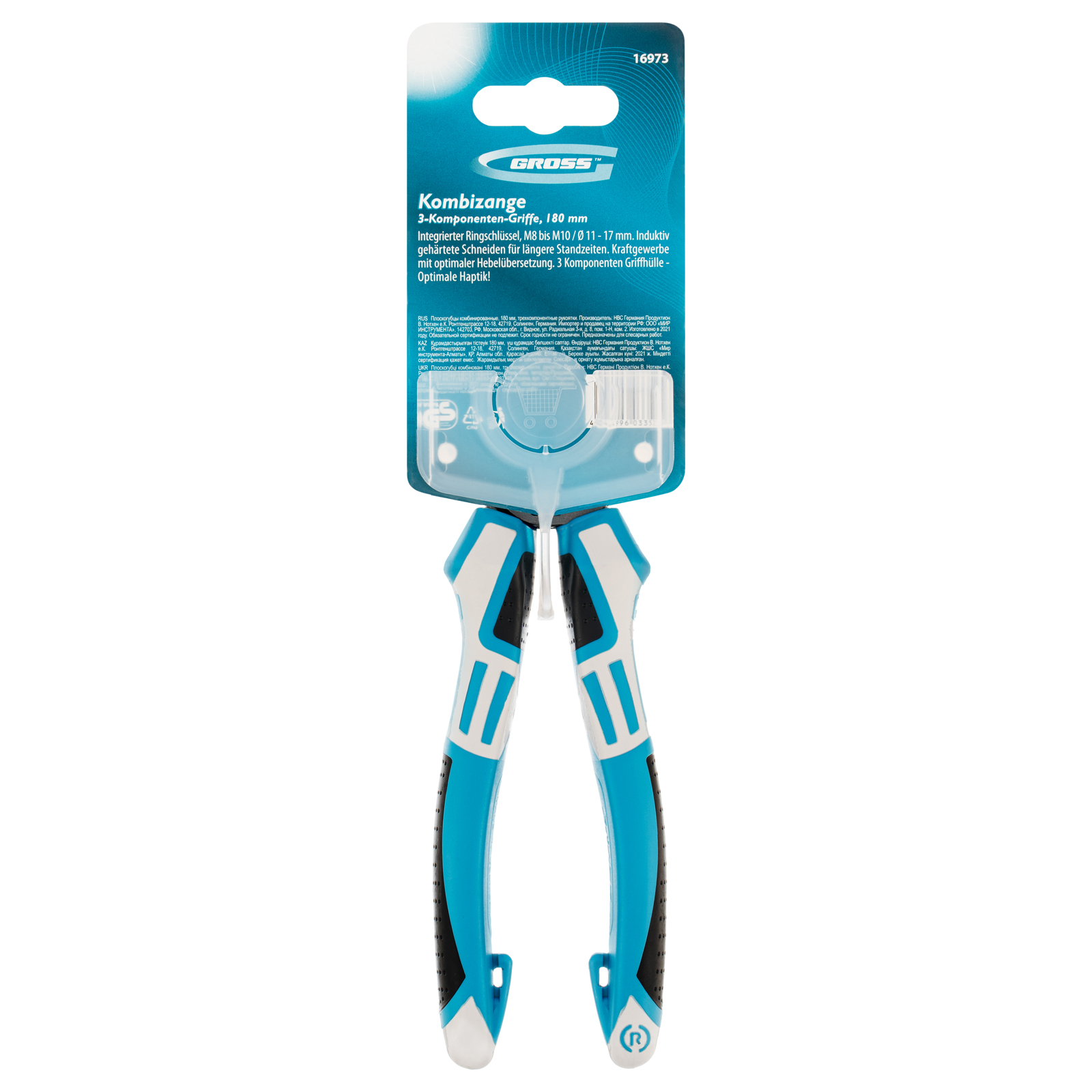 Плоскогубцы комбинированные 180 мм, трехкомпонентные рукоятки Gross в Краснодаре