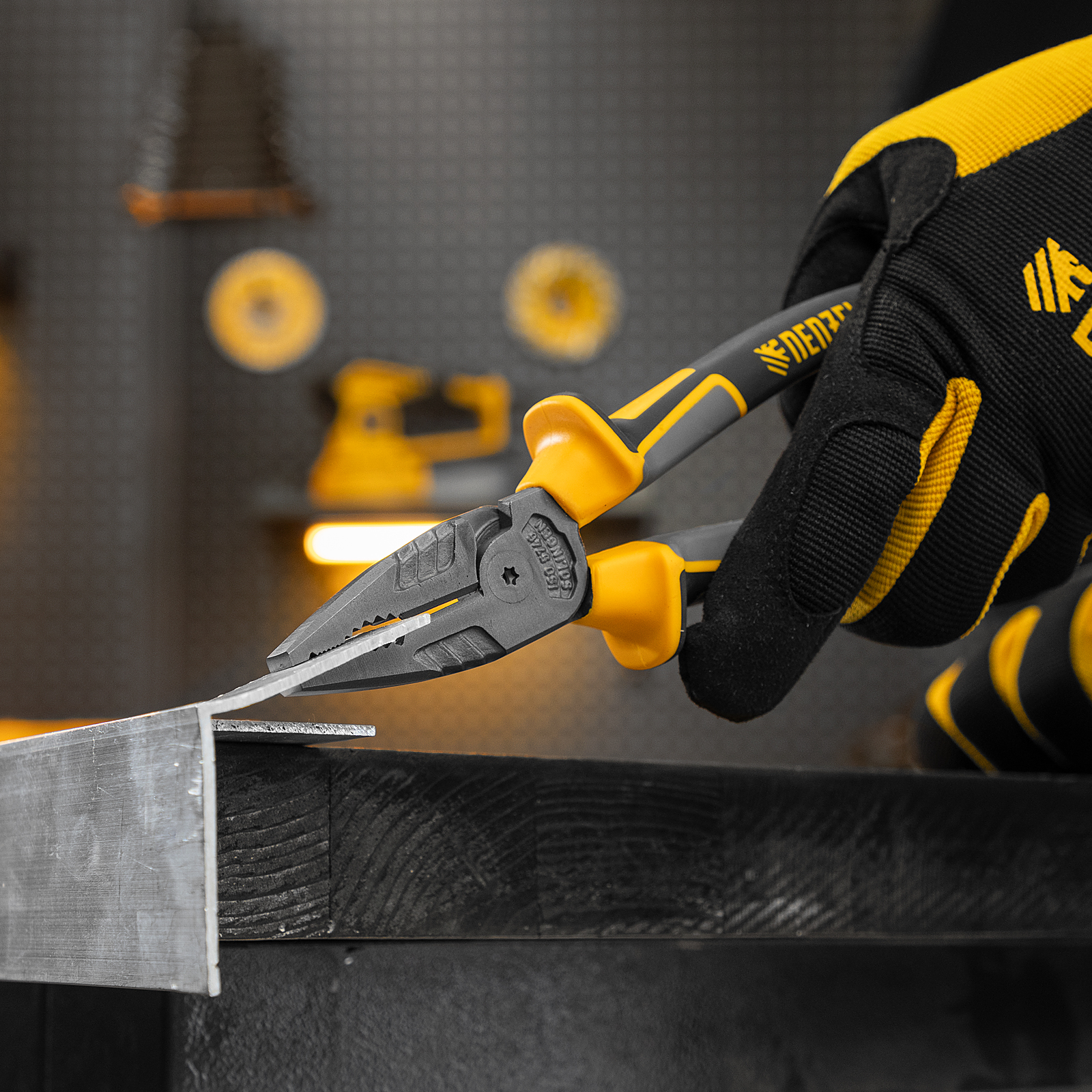 Комбинированные плоскогубцы Denzel 17082 длиной 205 мм, с трехкомпонентными рукоятками, используются для зажима и удержания деталей, сгибания металлических листов. Позволяют также перекусывать мягкую проволоку (алюминиевую, медную, с пределом прочности 220 Н/мм2) диаметром до 5,9 мм, проволоку средней жесткости и гвозди (750 Н/мм2) диаметром до 3,8 мм, а также жесткую (1800 Н/мм2) толщиной до 2,5 мм. Имеют внутренние грани специальной формы, предназначенные для использования инструмента в качестве гаечного ключа. Губки с насечками надежно удерживают заготовки. Плоскогубцы пригодятся профессионалу и частному мастеру при проведении слесарных, ремонтных и сборочных работ.