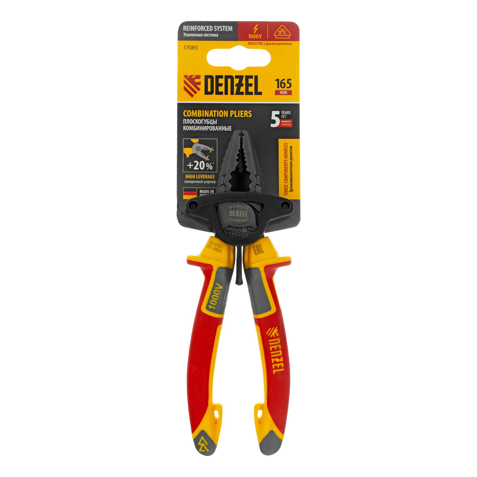 Плоскогубцы комбинированные, диэлектрические трехкомпонентные рукоятки до 1000 В, 165 мм Denzel в Краснодаре