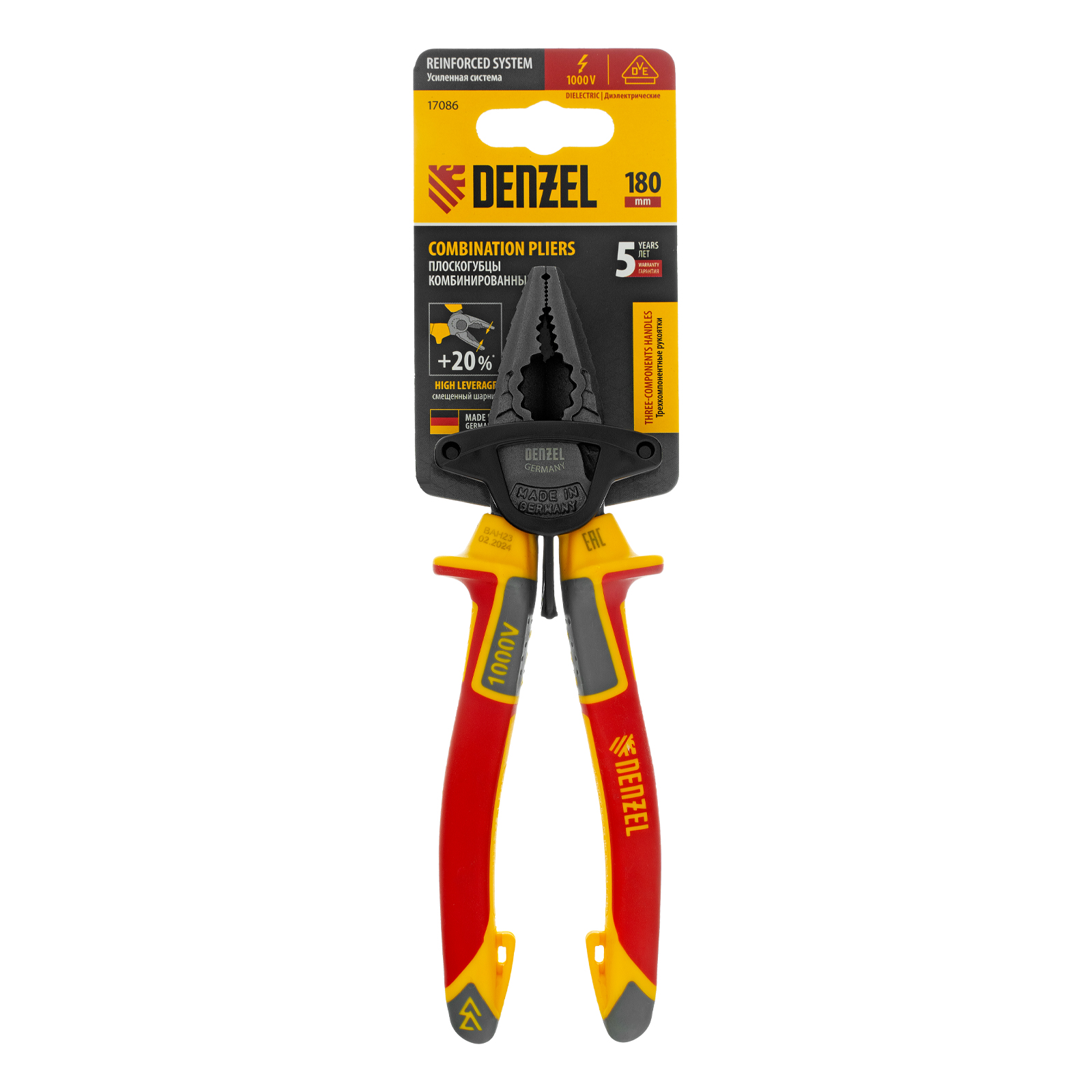 Плоскогубцы комбинированные, диэлектрические трехкомпонентные рукоятки до 1000 В, 180 мм Denzel в Краснодаре