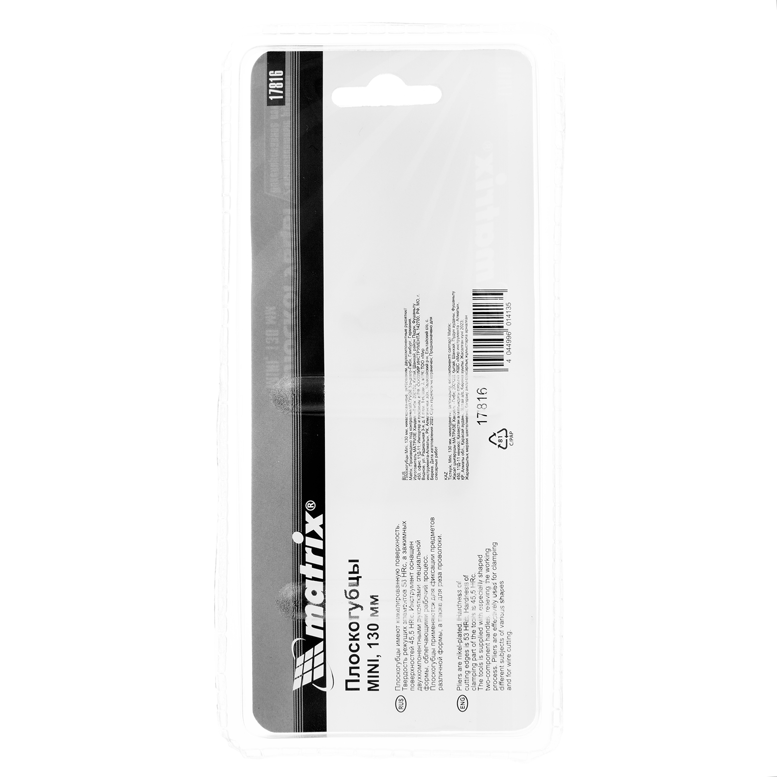 Плоскогубцы Mini, 130 мм, никелированные, авторазжим, двухкомпонентные рукоятки Matrix в Краснодаре
