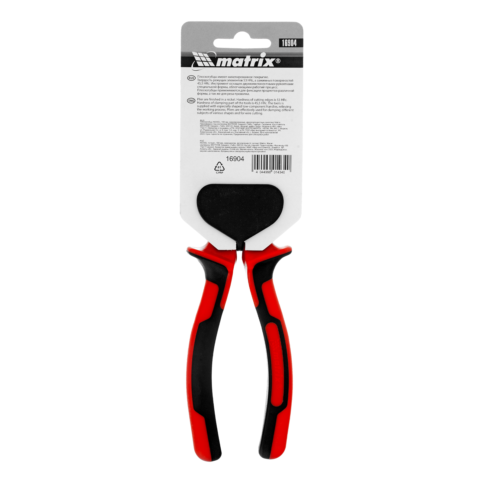 Плоскогубцы Nickel, 180 мм, никелированные, двухкомпонентные рукоятки Matrix в Краснодаре