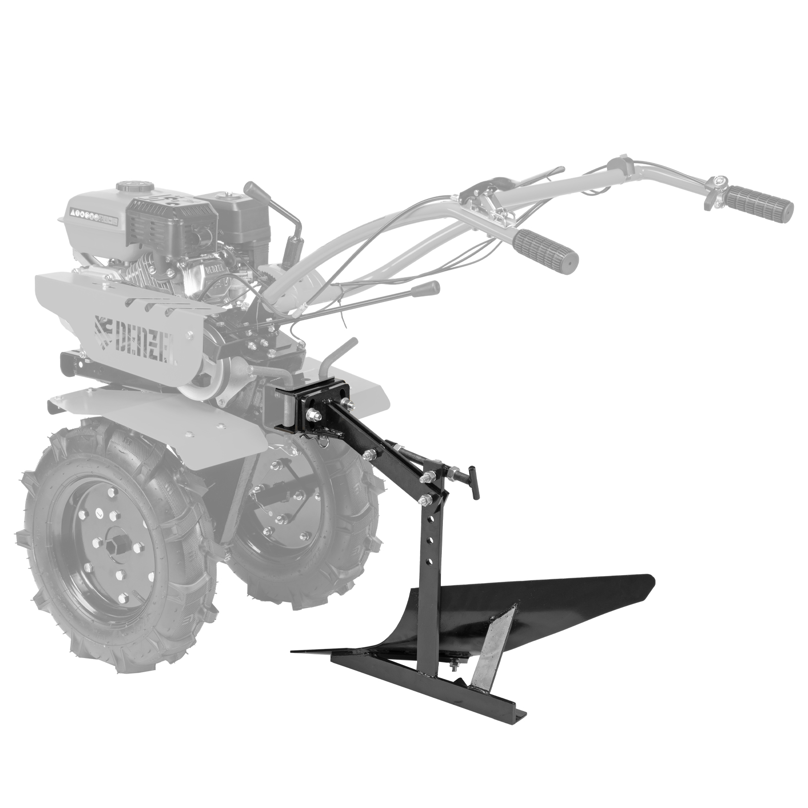 Плуг Denzel 59911 с лезвием шириной 200 мм — навесное оборудование для мотоблока (поставляется без сцепки). Предназначен для вспахивания и рыхления мягкого грунта. Позволяет подготовить почву к посадкам. Пригодится владельцам загородных участков и фермерских хозяйств. Плуг совместим с универсальной сцепкой Denzel 59910.