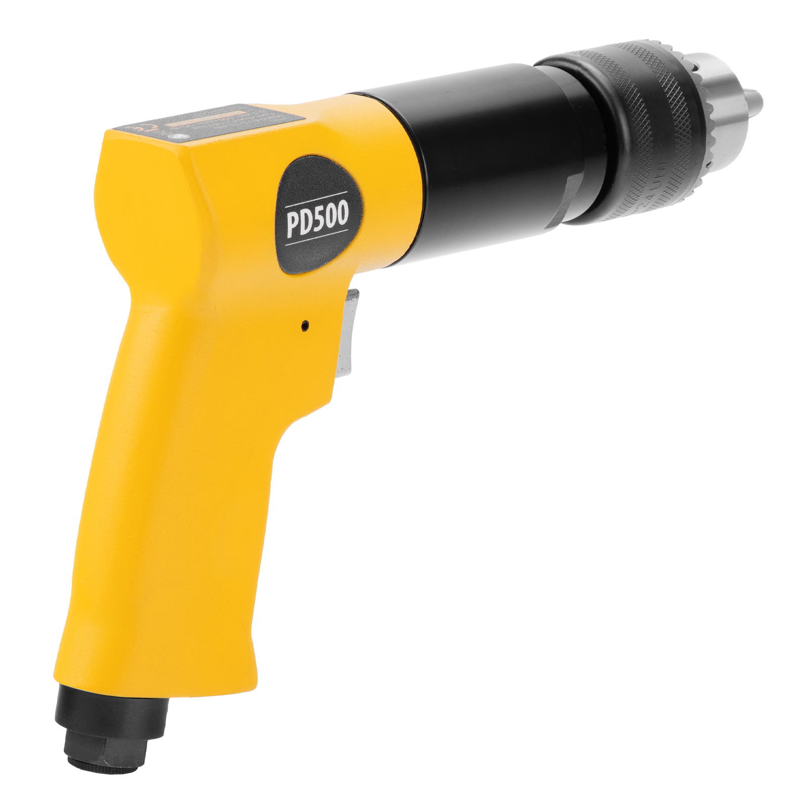 Пневматическая дрель Denzel PD500 57478 с ключевым патроном 1,5-13 мм работает со скоростью 500 об/мин при среднем расходе сжатого воздуха 114 л/мин. Используется для сверления отверстий в древесине, металле и пластике, закручивания и откручивания резьбовых крепёжных элементов. Дрель может применяться в строительстве, монтажных работах, ремонте и обслуживании автомобилей, на малых производствах и в домашних мастерских.,Инструмент предназначен для работы под давлением 6,3 бар, расход воздуха не превышает 200 л/мин, поэтому в качестве источника сжатого воздуха подойдет компрессор средней мощности. Во время работы не забывайте использовать специальное масло ISO 46, которое можно добавлять как напрямую в инструмент, так и с помощью блока подготовки воздуха Denzel 57469, включающего в себя лубрикатор для автоматической подачи масла.