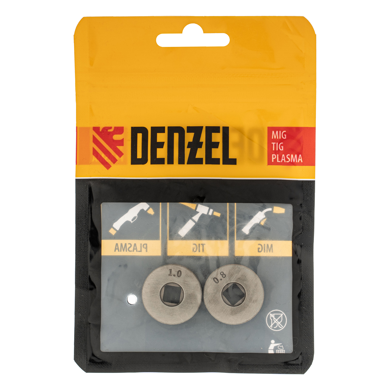 Подающий ролик Denzel 93651 с V-профилем, 2 шт. в упаковке, с посадкой «квадрат», — элемент конструкции сварочного аппарата, предназначенный для протягивания стальной проволоки диаметром 0,8-1 мм. Совместим с моделями 94321, 94322, а также со сварочными полуавтоматами других торговых марок.