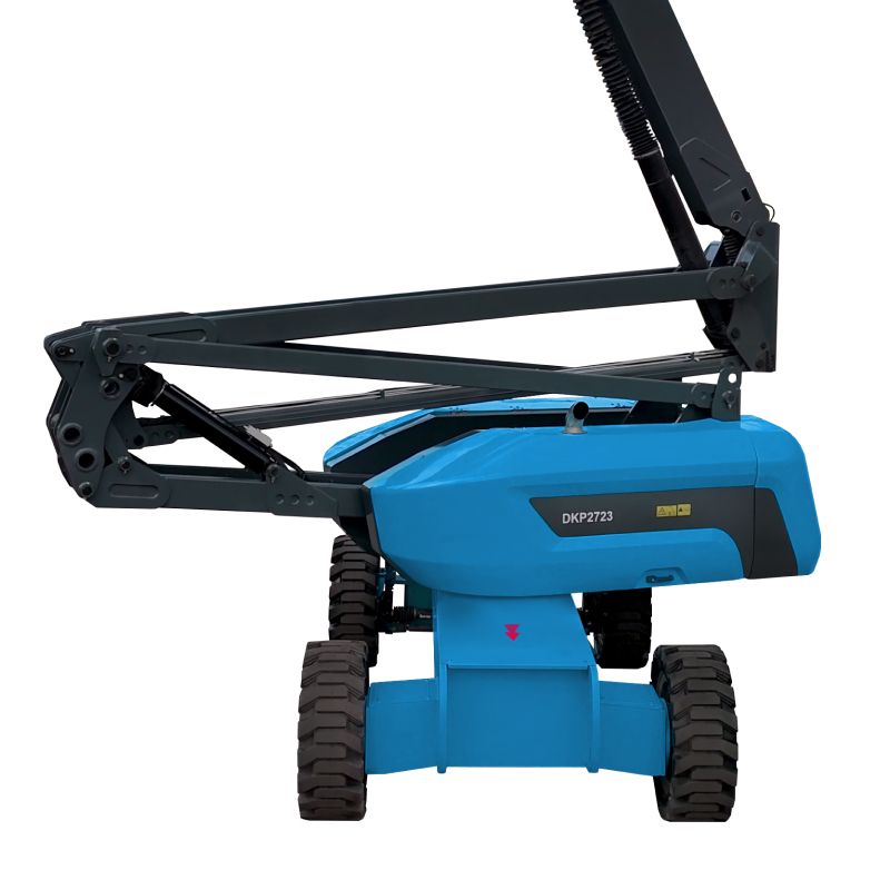 Стрела сгибается в нескольких точках, может обойти здания, деревья, линии электропередач, другие препятствия. Благодаря этому DKP2723 дотянется туда, куда обычные подъемники не доберутся.