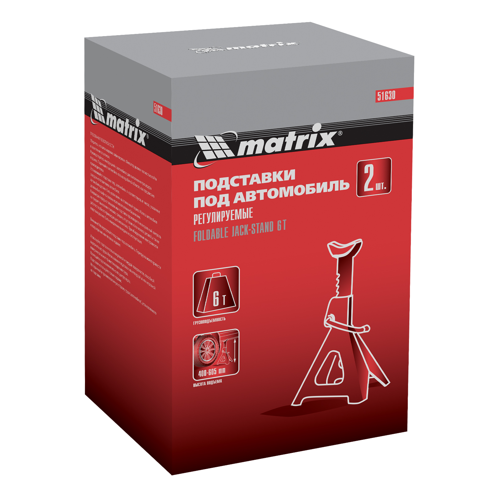 Подставки под машину регулируемые, 6 т, H подъема 400-605 мм, 2 шт Matrix в Краснодаре