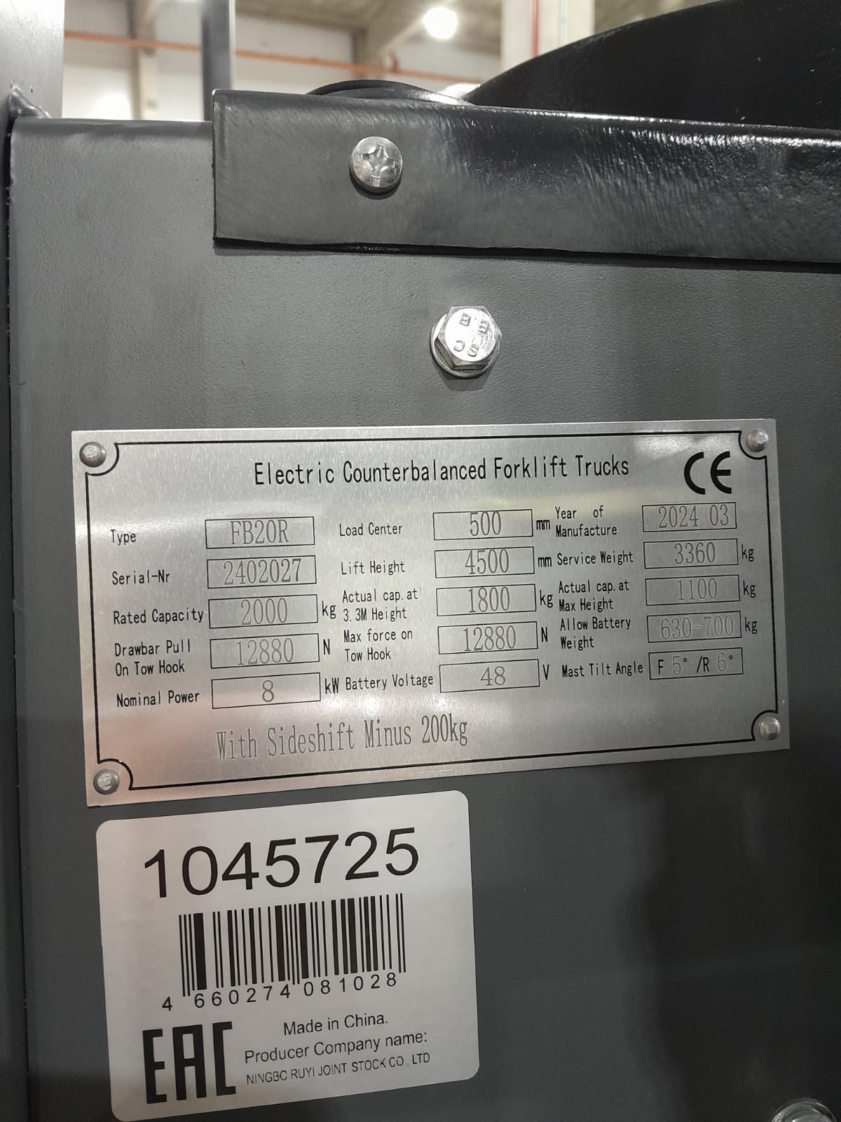 • Погрузчик электрический четырехопорный TOR 2,0 т 3,3 м FB20R сайдшифт Li-ion купить в Москве с доставкой по всей России | ProtosMarket.ru
