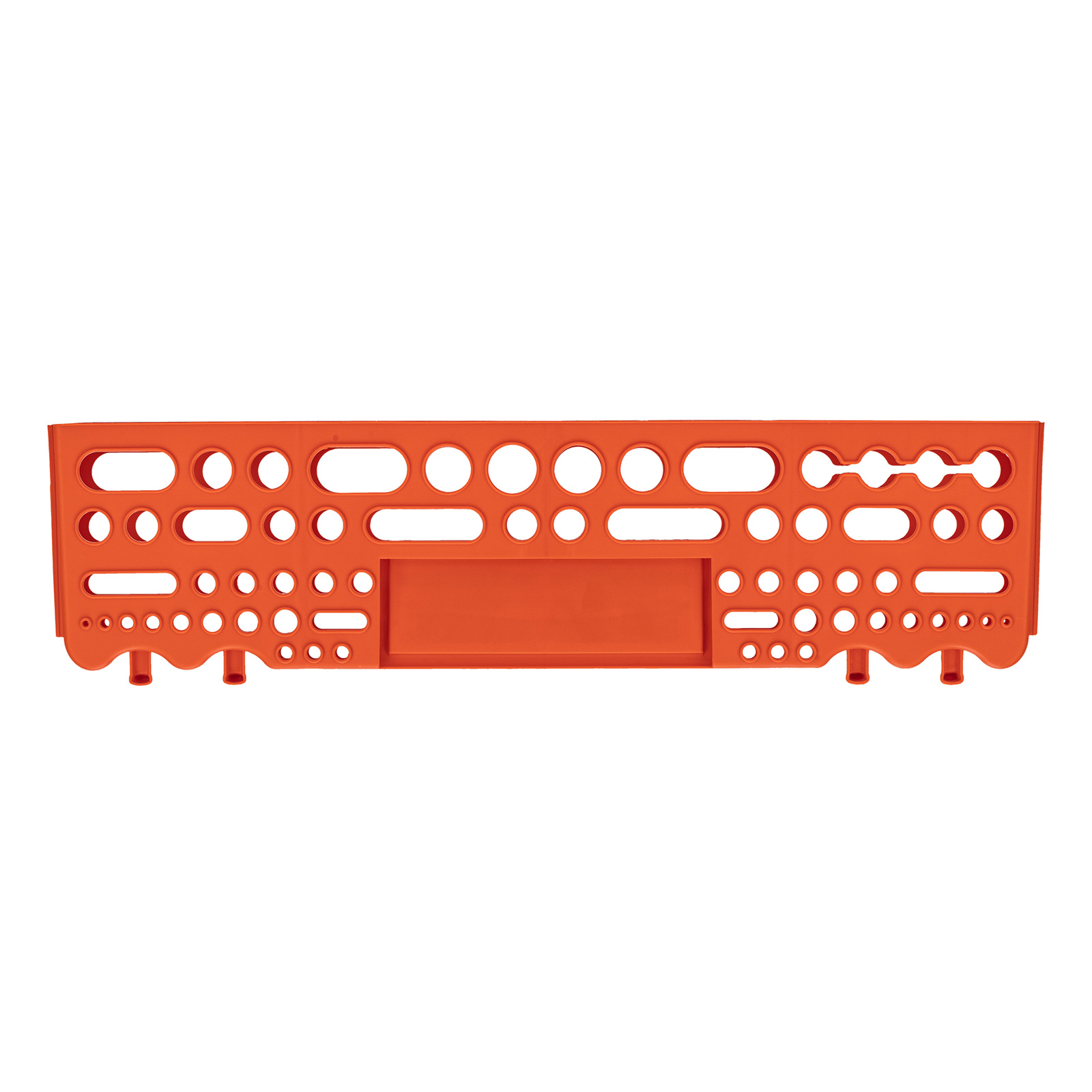 - Большая длина 625 мм и индивидуальные отверстия под инструменты — на полке можно разместить до 65 предметов.