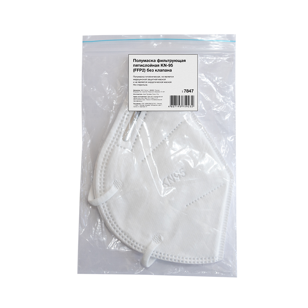 Полумаска фильтрующая пятислойная KN-95 без клапана в Краснодаре
