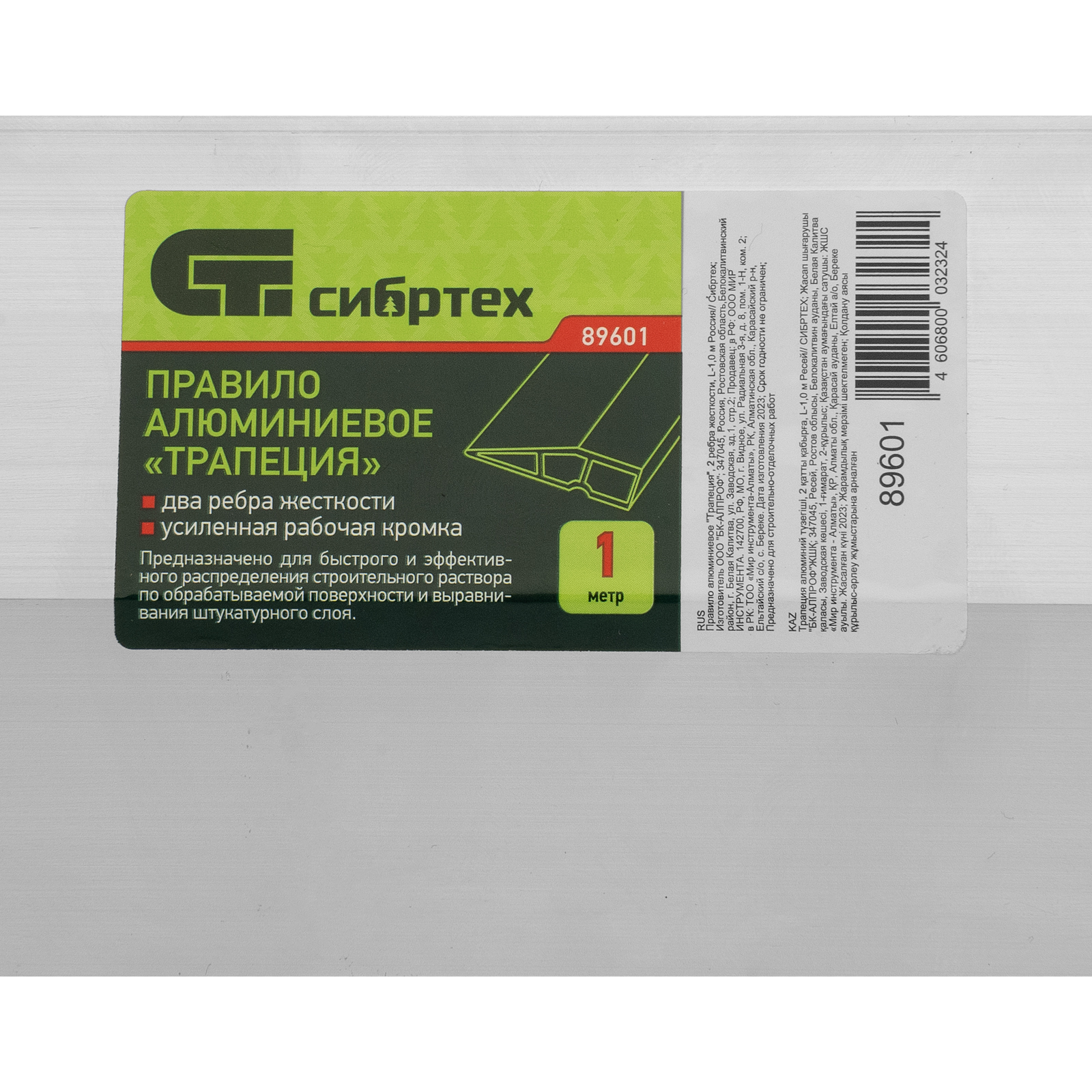 Алюминиевое правило Сибртех «Трапеция» 89601 с 2 ребрами жесткости, длиной 1,0 м, — инструмент для выравнивания стен и удаления излишков нанесенного раствора. Также применяется для контроля ровности поверхности перед окончательной отделкой. Изготовлено из алюминиевого сплава и имеет малый вес, поэтому им можно долго работать без усталости. Инструмент используется для проведения строительных работ.