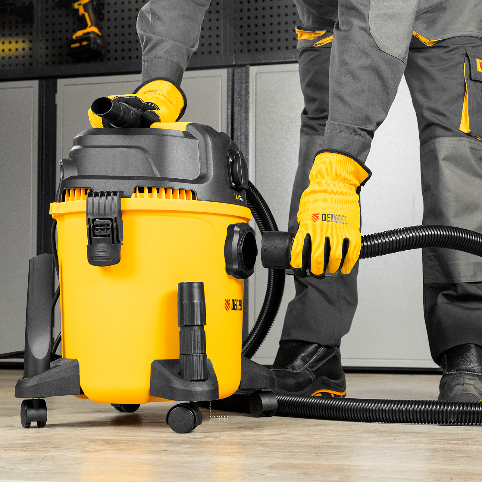 Пылесос строительный RVC20, 1400 Вт, бак 20 л, шланг 3 м, розетка с автосинхр. Denzel в Краснодаре