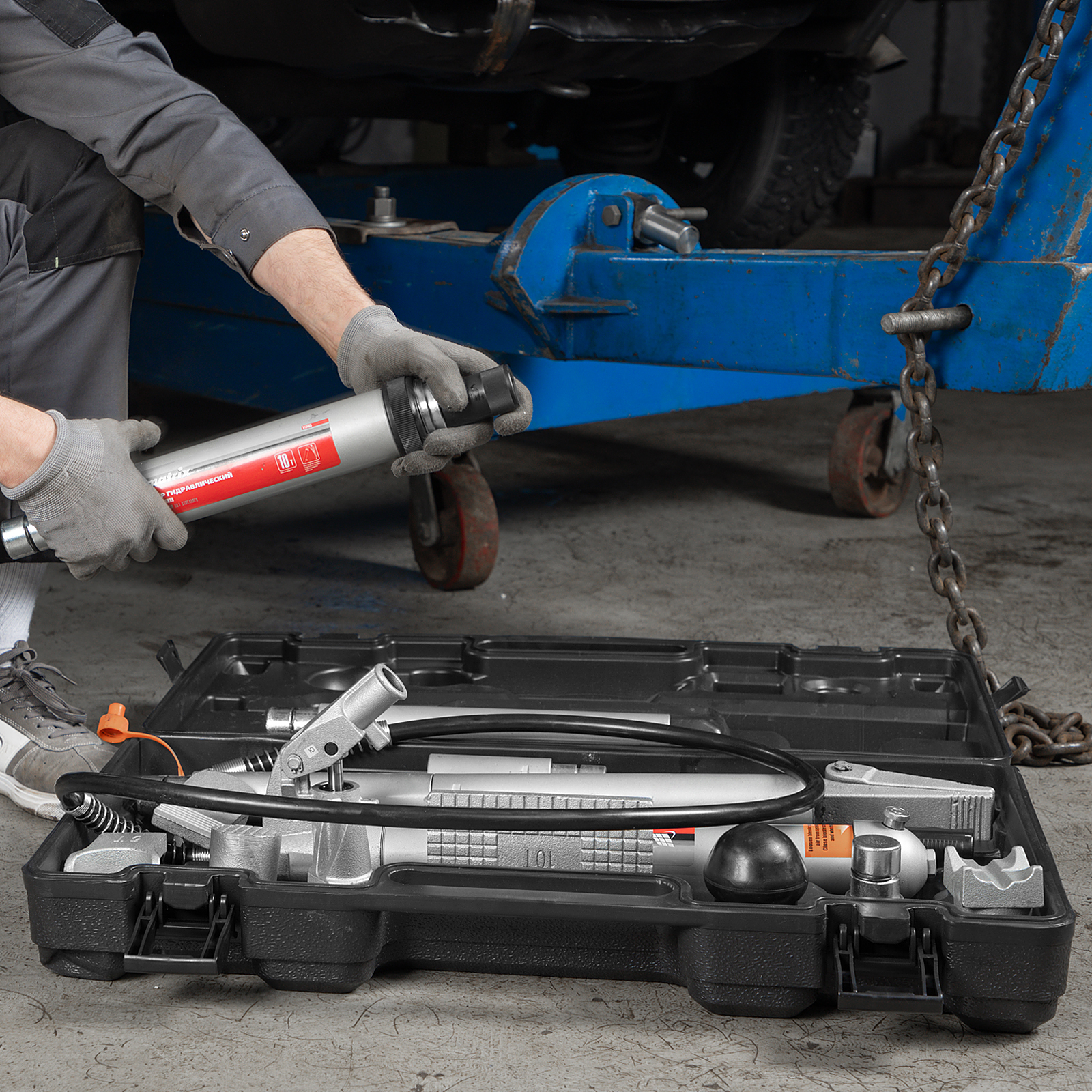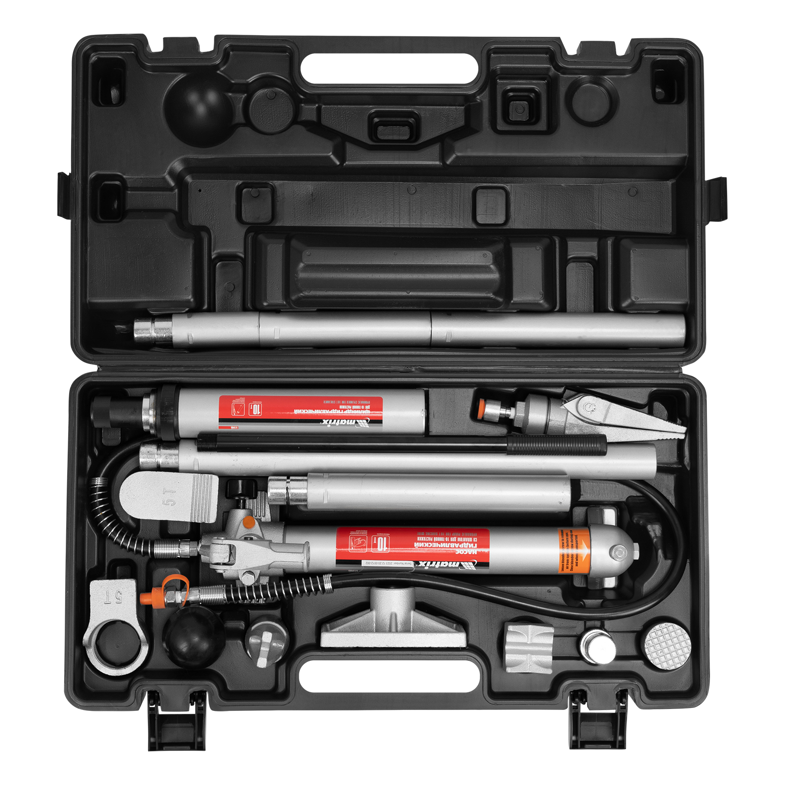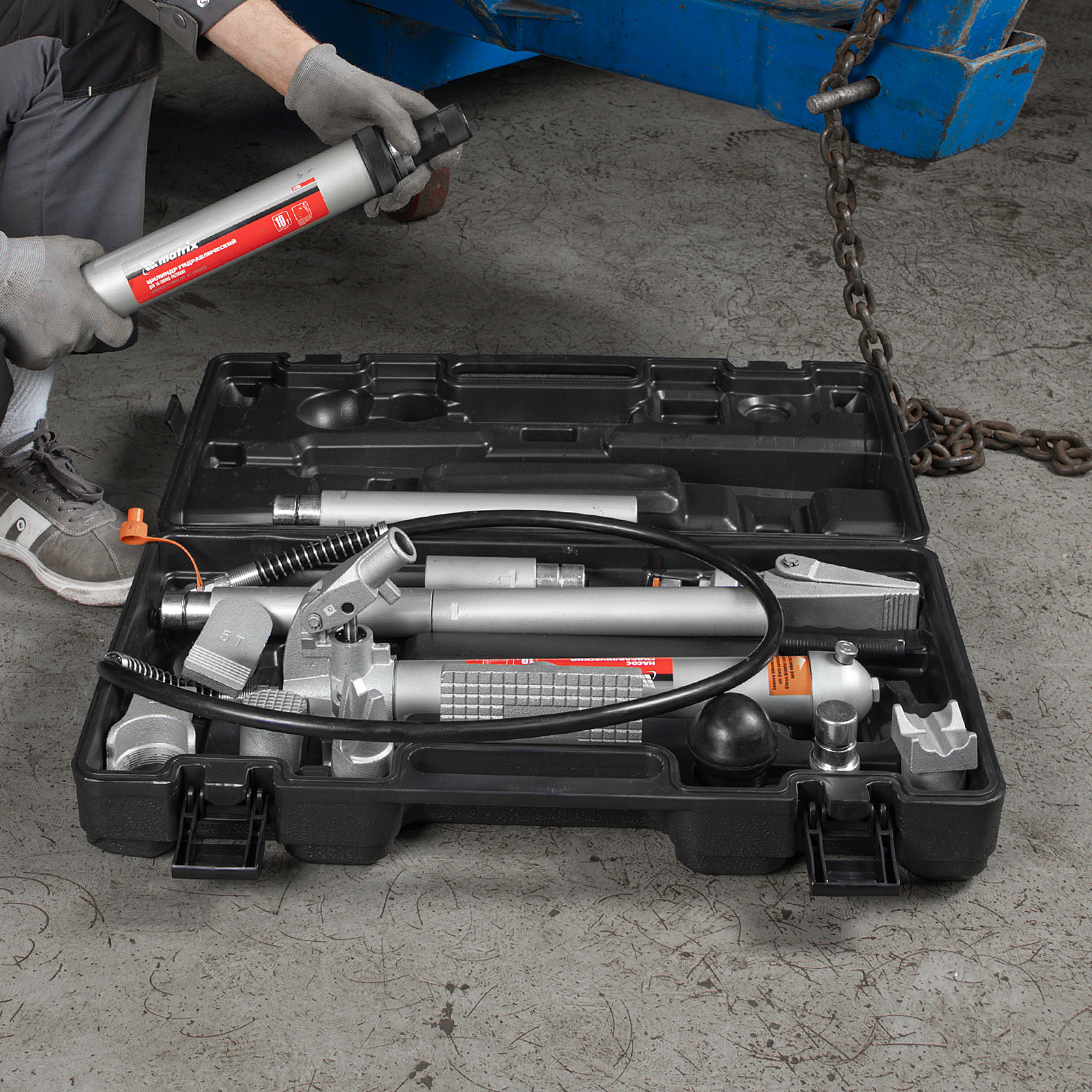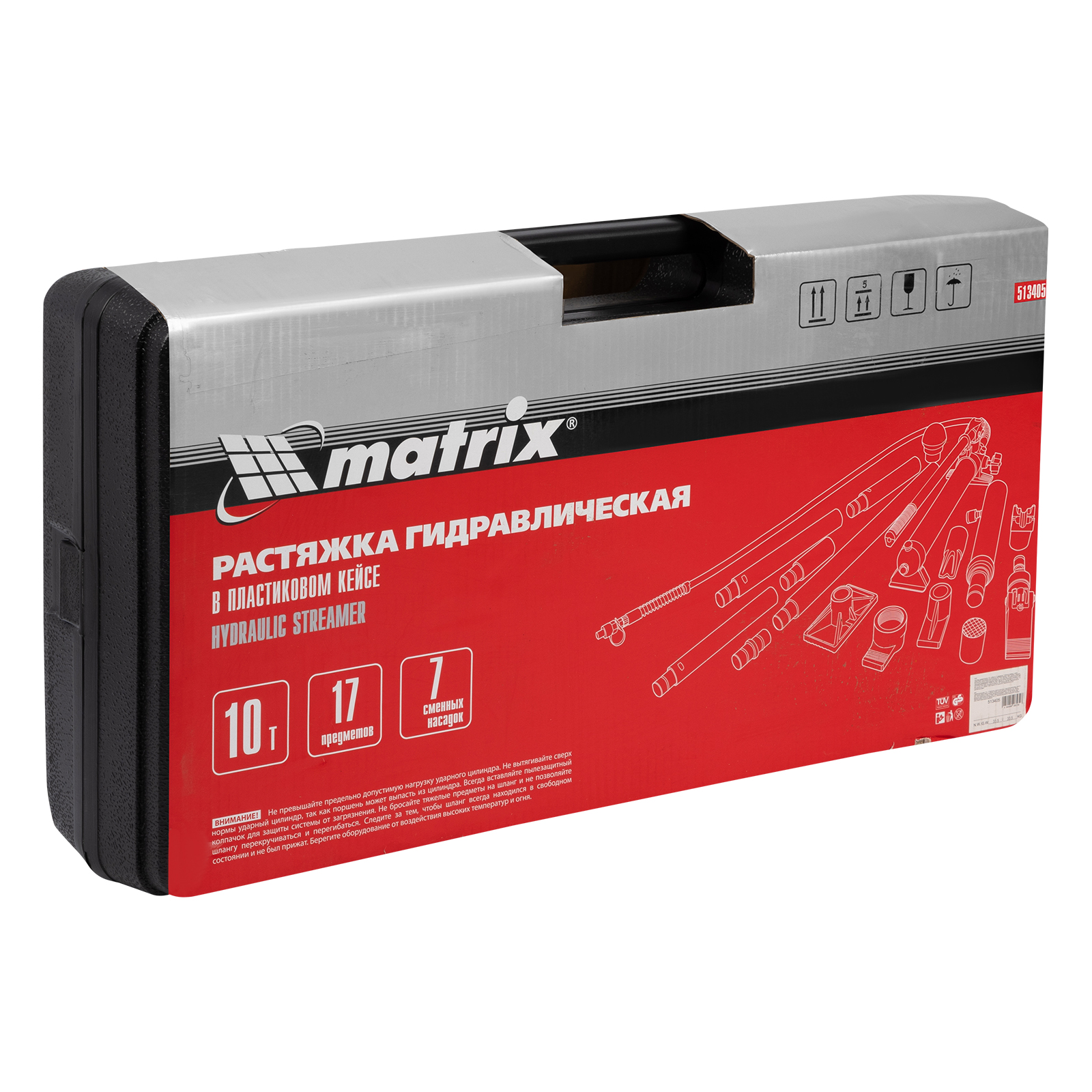 Растяжка гидравлическая, 10 т, набор из 17 предметов, 7 сменных насадок, в пластиковом кейсе Matrix в Краснодаре