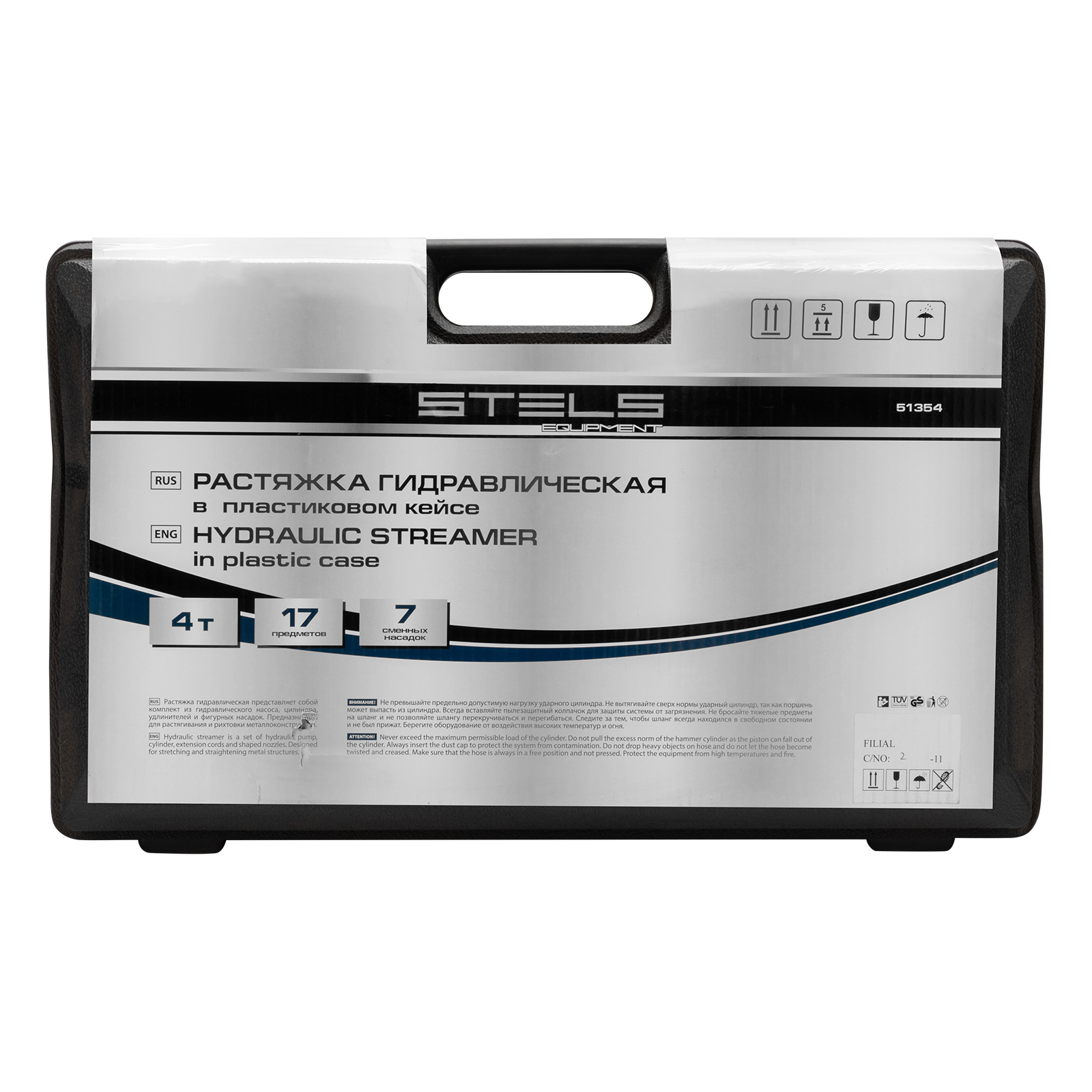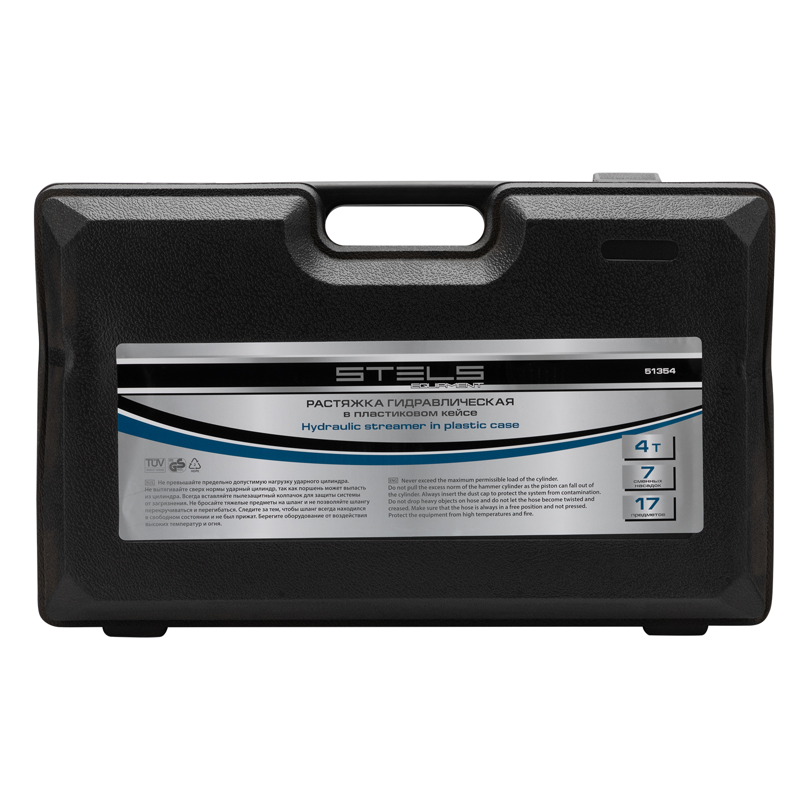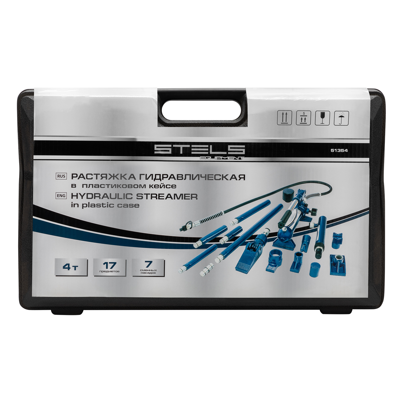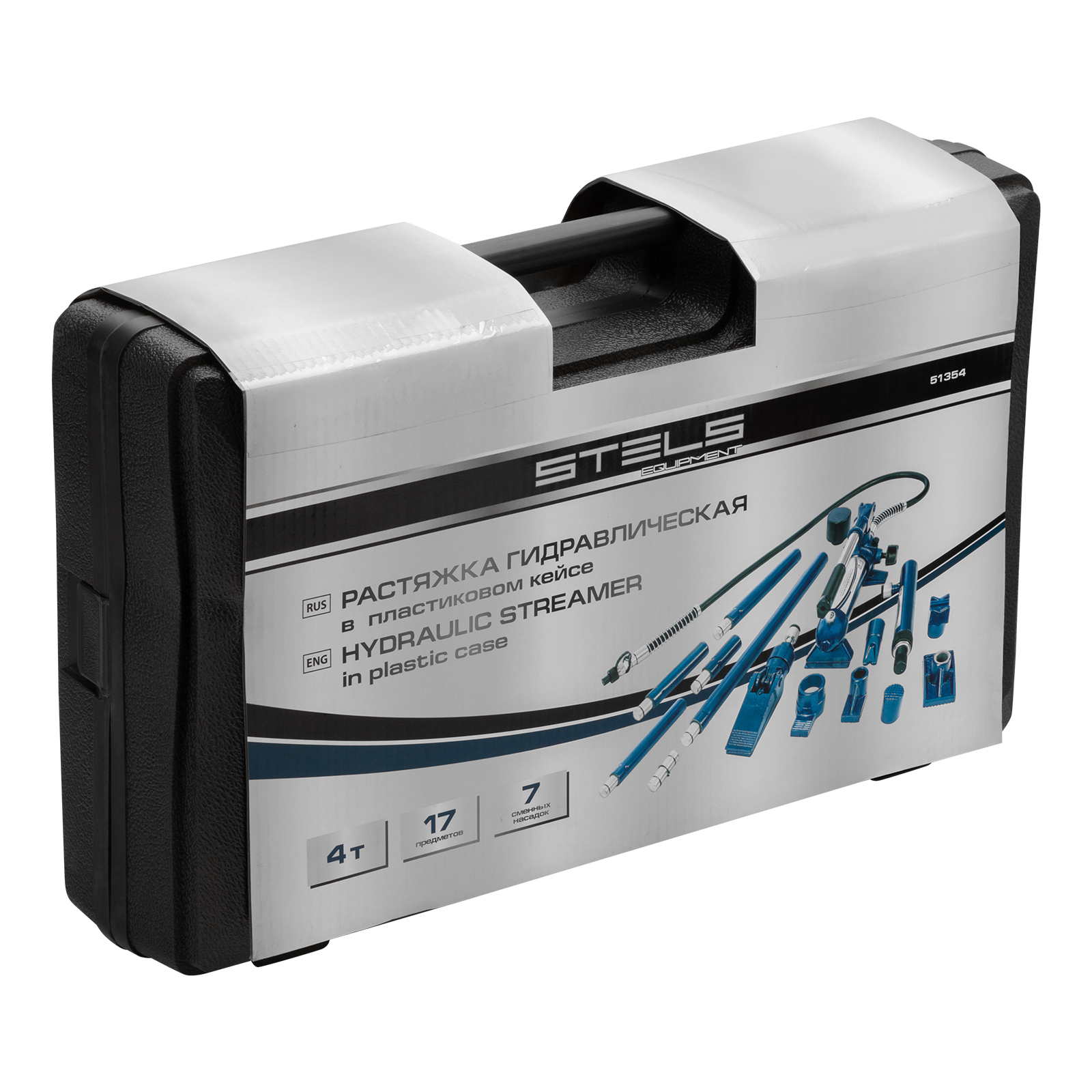 Растяжка гидравлическая, 4 т, набор из 17 предметов, 7 сменных насадок, в пластиковом кейсе Stels в Краснодаре