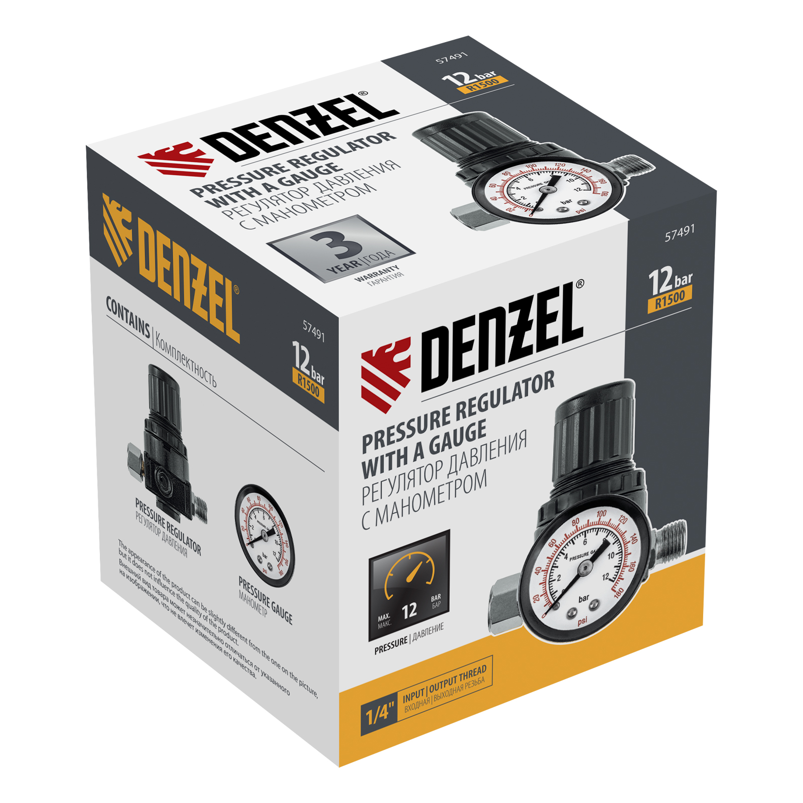 Регулятор давления с манометром R1500, 12 бар, 1/4" Denzel в Краснодаре
