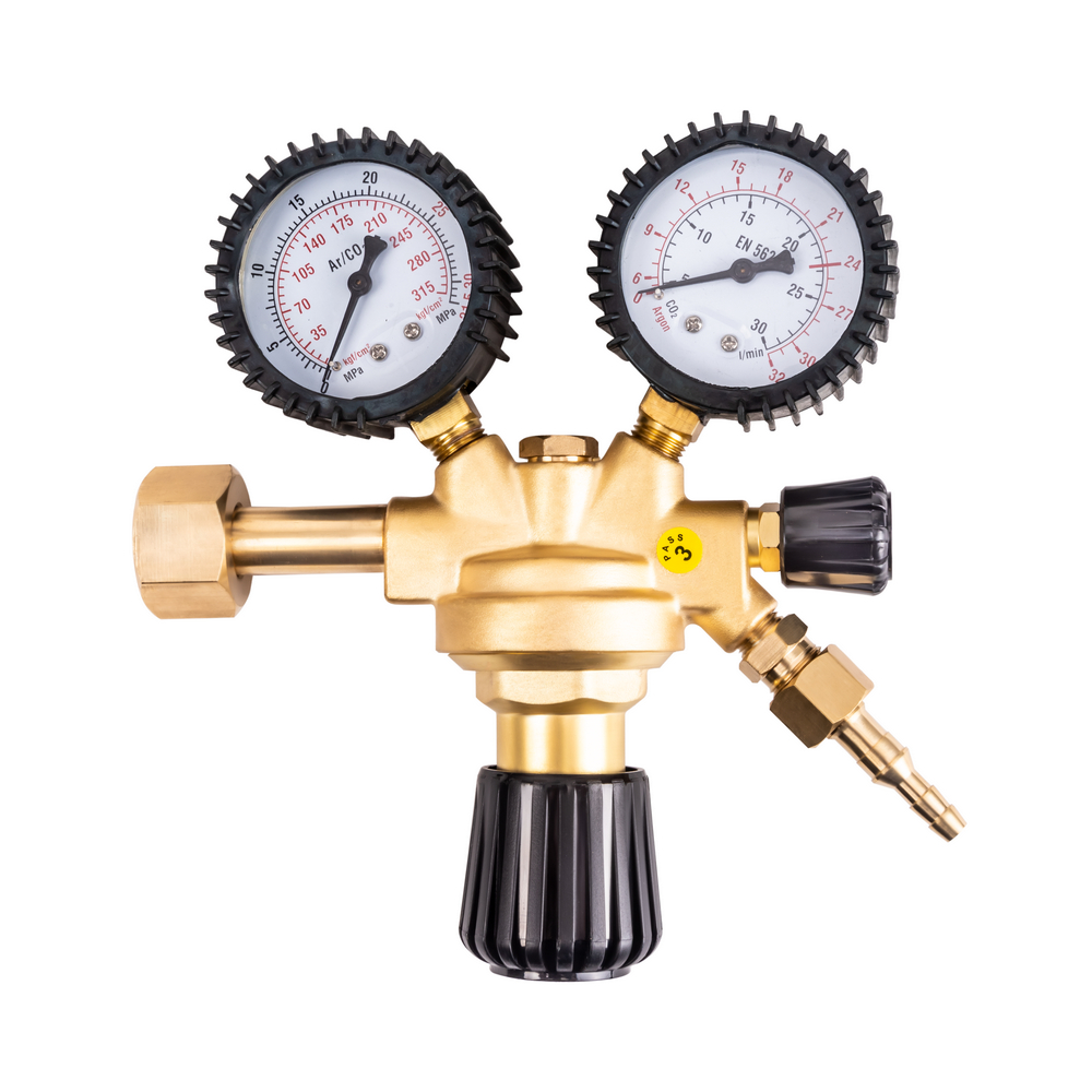 Регулятор расхода газа WR500 используется для понижения поступающего газа из баллона, регулировки расхода и автоматического поддержания заданных параметров при выполнении газосварочных работ. Модель предназначена для использования с химическим соединением аргона или углекислого газа. Регулятор оснащен манометром и расходомером, с помощью вентиля точно регулируется расход газа. Регулятор необходим при проведении газосварочных работ, пайке и резке металлов, газового напыления.БЕЗОПАСНОСТЬ РАБОЧЕГО ПРОЦЕССА: Корпус из латуни обеспечивает безопасность в работе. Материал прочен и не дает искр при использовании. Надежное крепление не допускает протечки газа во внешнюю среду.ВЫСОКАЯ ЭФФЕКТИВНОСТЬ: Газовый регулятор обеспечивает меньший расход рабочих газов при газосварочном процессе, поддерживает заданный уровень давления до окончания работы и экономит газ в баллоне.ВНЕШНИЕ РЕГУЛИРОВКИ: Аргоновый регулятор имеет вентиль регулировки подачи газа. Для качественного выполнения газосварочных работ необходимо создать рабочую среду и контролировать расход газа, поступающий из баллона. Вентиль снижает или понижает поступающее давление - можно настроить необходимое рабочее давление на выходе и проконтролировать процесс с помощью манометра.ВСТРОЕННЫЙ МАНОМЕТР: Встроенный манометр давления на входе показывает давление поступающего из баллона газа. С помощью манометра удобно отслеживать уровень давления и задать необходимый объём для работы. Регулировка давления подачи газа осуществляется с помощью наружного вентиля.КОМПЛЕКТАЦИЯ: Регулятор WR500 – 1 шт.; Индивидуальная упаковка – 1 шт.; Инструкция по эксплуатации – 1 шт.*Производитель оставляет за собой право менять комплектацию оборудования.
