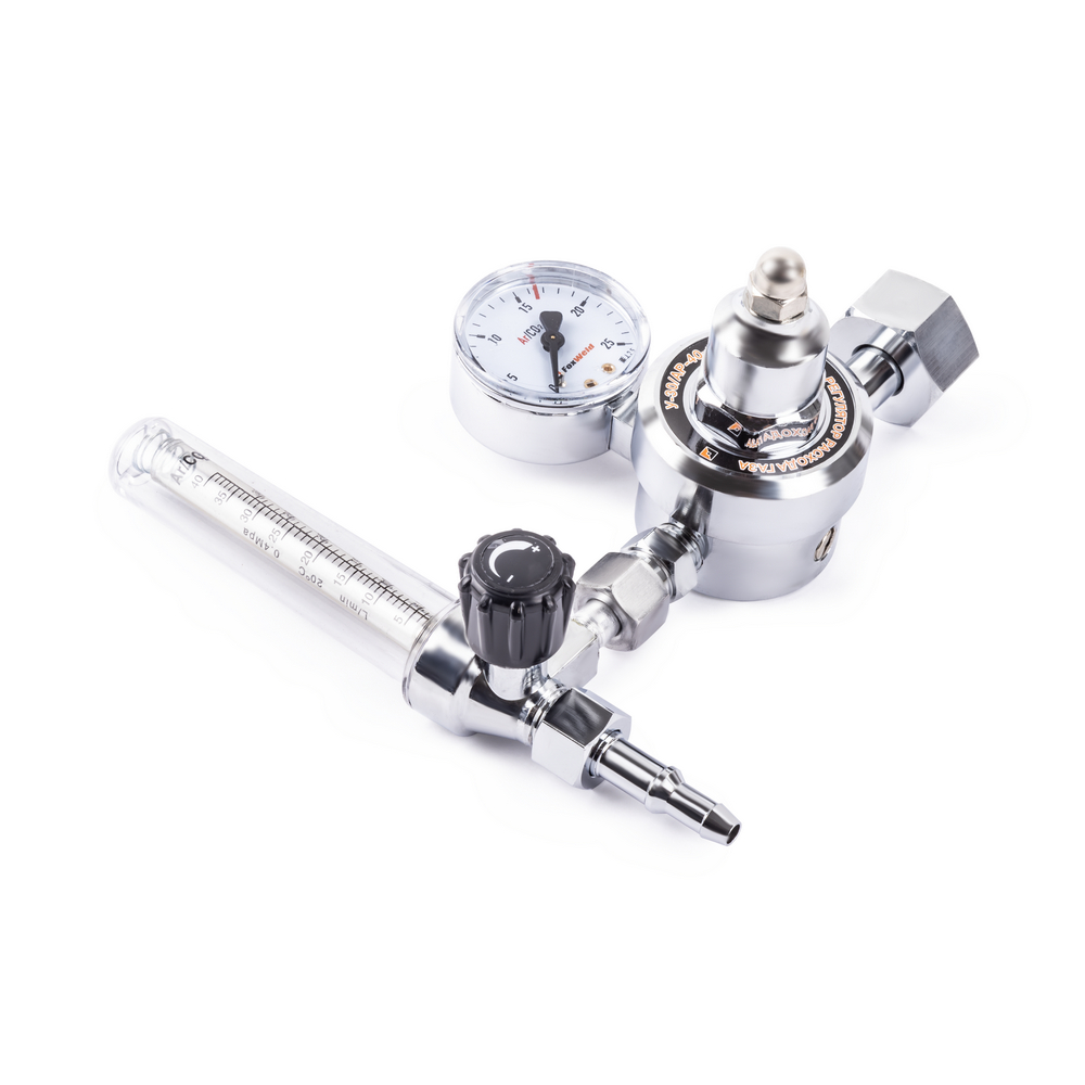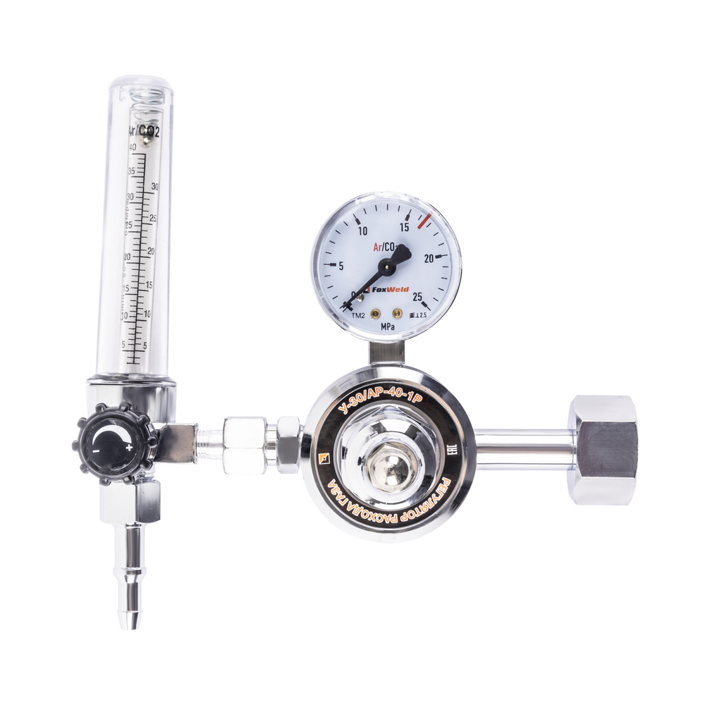 Универсальный регулятор расхода газа У-30/АР-40-1P используется для снижения давления на выходе из баллона, регулирования расхода газа и автоматического поддержания заданных параметров при газосварочном процессе. Модель выполнена из латуни с покрытием никеля. Регулятор оснащен манометром высокого давления на входе и ротаметром на выходе. Вентиль позволяет точно выстроить необходимый расход газа для создания рабочей среды. Газовый регулятор необходим при проведении сварочных работ, резке и пайки металлов, газового напыления.БЕЗОПАСНОСТЬ РАБОЧЕГО ПРОЦЕССА: Корпус из латуни обеспечивает безопасность в работе. Материал прочен и не дает искр при использовании. Надежное крепление не допускает протечки газа во внешнюю среду.ВЫСОКАЯ ЭФФЕКТИВНОСТЬ: Газовый регулятор обеспечивает меньший расход рабочих газов при газосварочном процессе, поддерживает заданный уровень давления до окончания работы и экономит газ в баллоне.ВНЕШНИЕ РЕГУЛИРОВКИ: Регулятор имеет вентиль регулировки подачи газа. Для качественного выполнения газосварочных работ необходимо создать рабочую среду и контролировать расход газа, поступающий из баллона. Вентиль снижает или понижает поступающее давление - можно настроить необходимое рабочее давление на выходе и проконтролировать процесс с помощью манометра.ВСТРОЕННЫЙ МАНОМЕТР: Встроенный манометр давления на входе показывает давление поступающего из баллона газа. С помощью манометра удобно отслеживать уровень давления и задать необходимый объём для работы. Регулировка давления подачи газа осуществляется с помощью наружного вентиля.КОМПЛЕКТАЦИЯ: Регулятор расхода газа У-30/АР-40-1P – 1 шт.; Индивидуальная упаковка – 1 шт.; Инструкция по эксплуатации – 1 шт.*Производитель оставляет за собой право менять комплектацию оборудования.