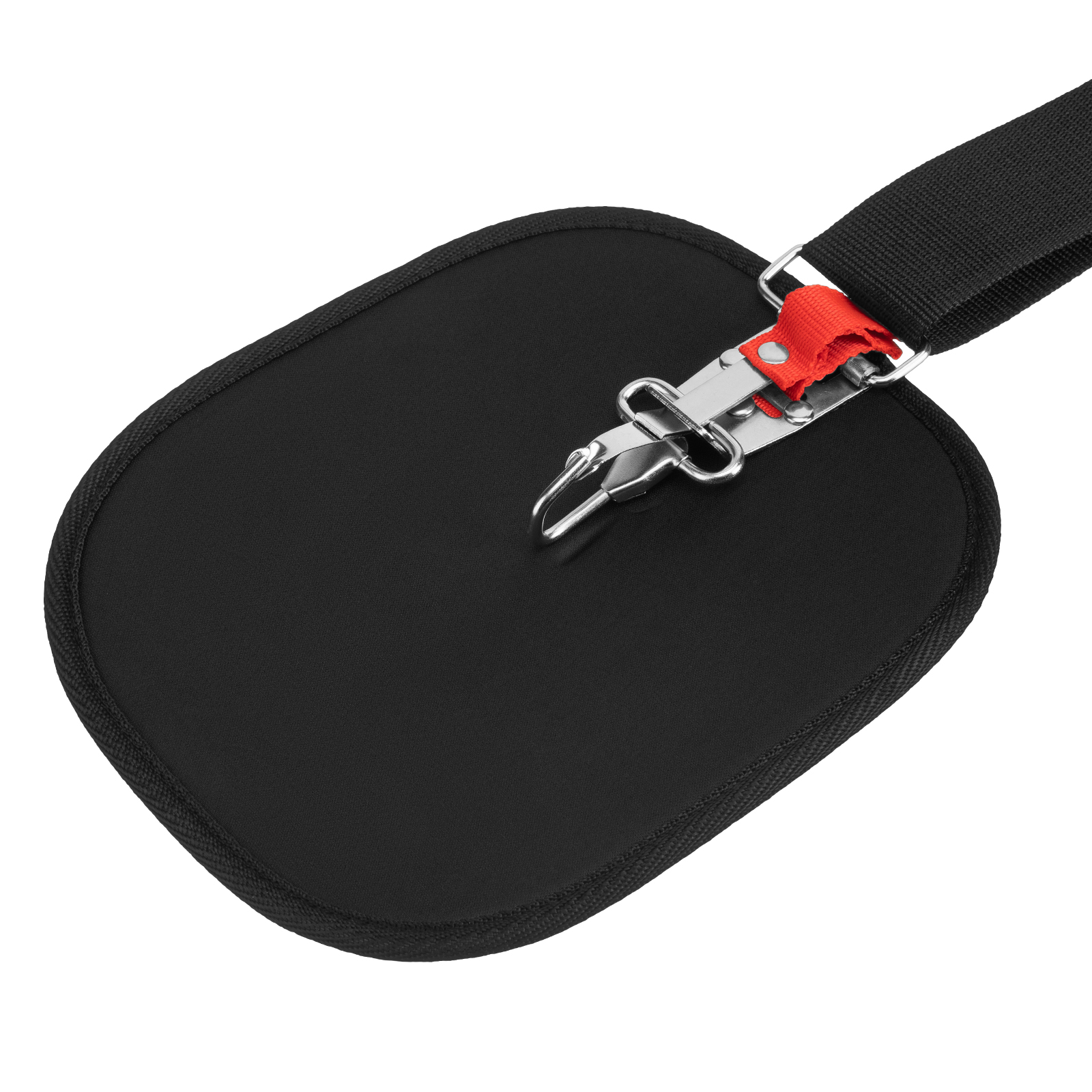 Универсальный ремень Denzel 96368 с защитой бедра предназначен для облегчения работы с триммерами. Он подвешивается на плечо, позволяя снизить нагрузку на руки, что удобно для выполнения работ средней продолжительности.