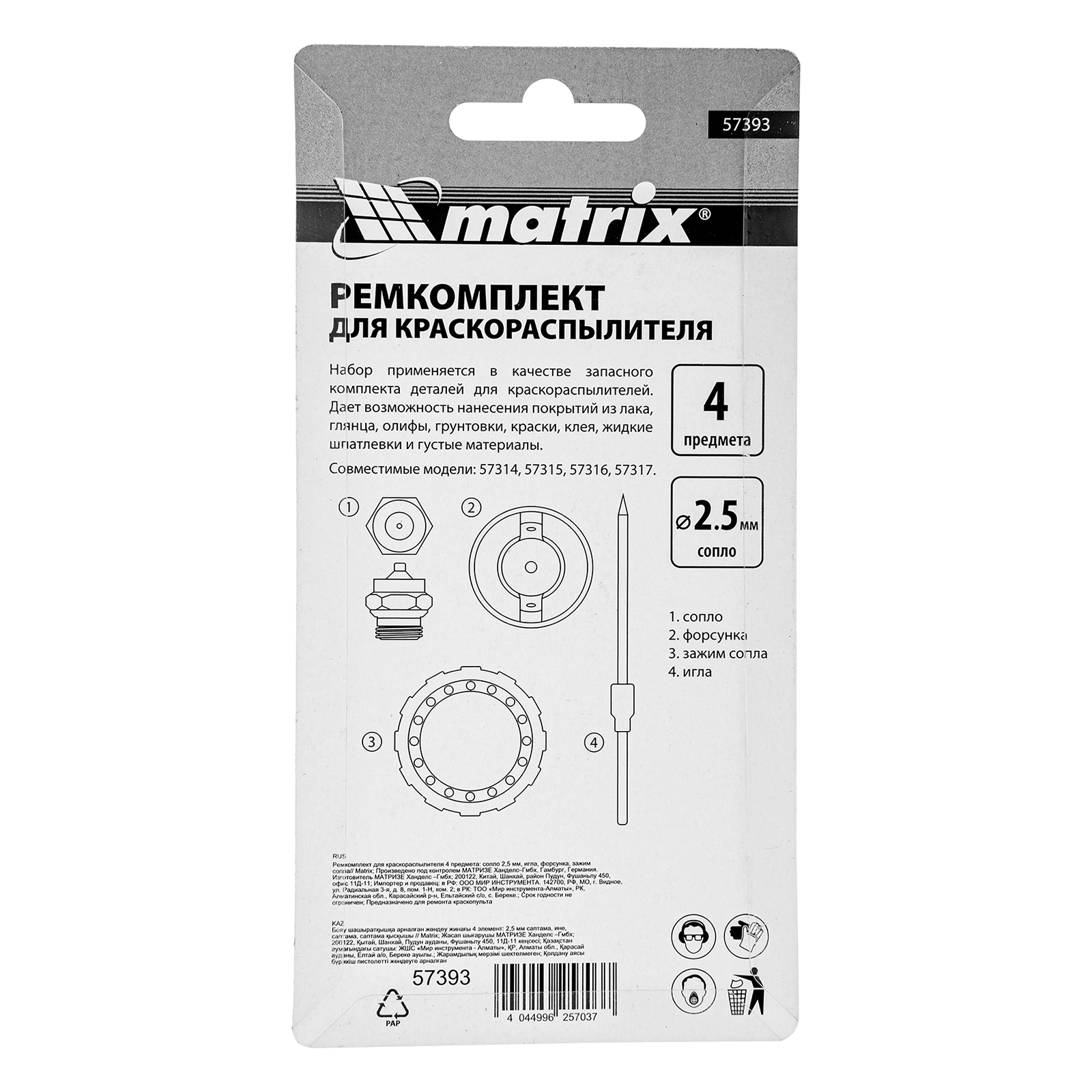 Ремкомплект для краскораспылителя 4 предмета: сопло 2,5 мм, игла, форсунка, зажим сопла Matrix в Краснодаре