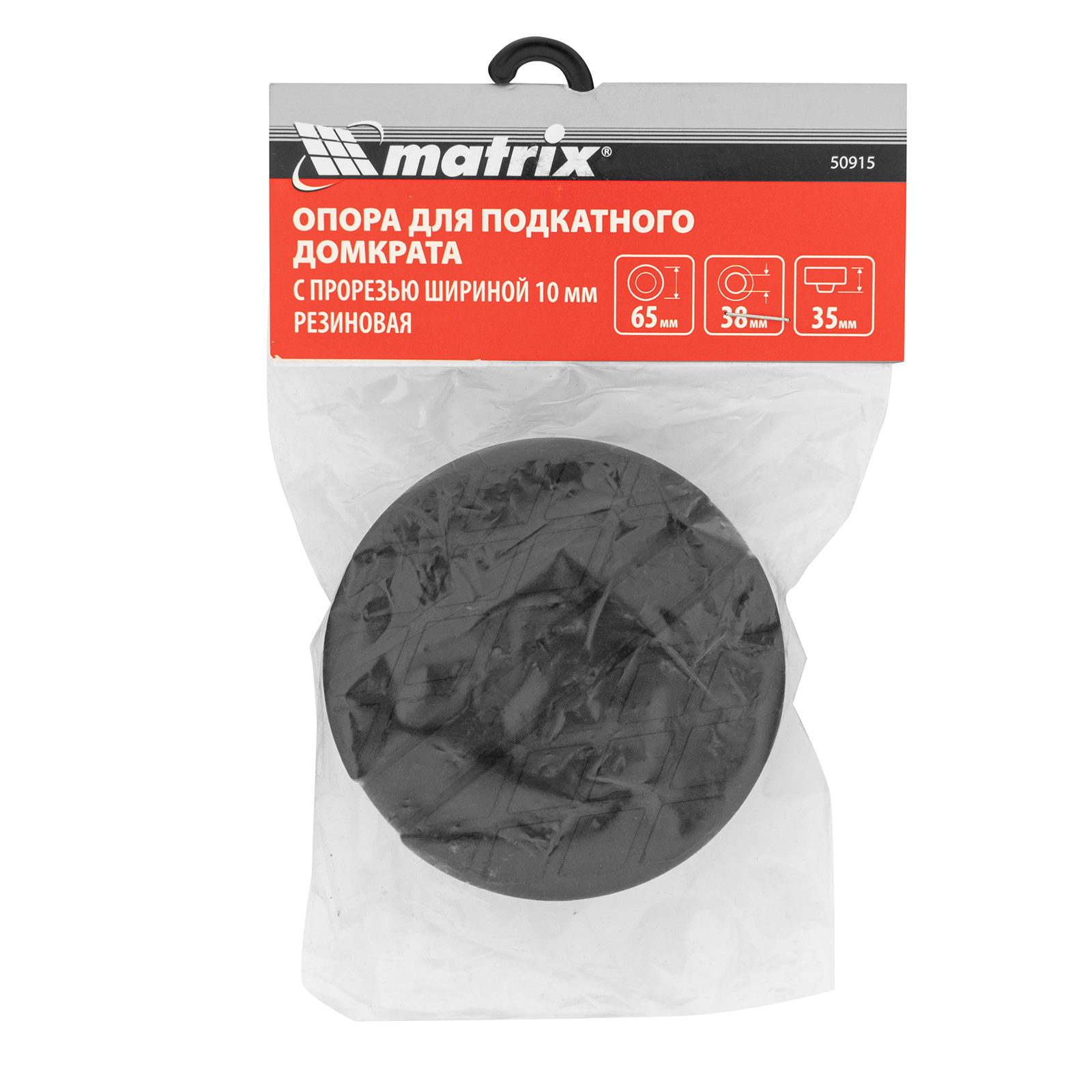 Резиновая опора с прорезью Matrix 50915 диаметром 65 мм предотвращает повреждение кузова автомобиля в месте упора с подкатным домкратом, а также препятствует поломке самого домкрата. Позволяет осуществить качественный ремонт машины в гараже или автосервисе.