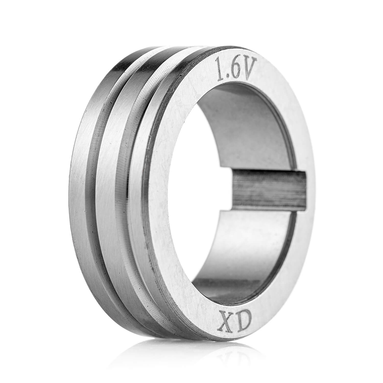 Ролик подающего механизма для сварочных полуавтоматов – это сменный элемент подающего механизма, который подбирается в соответствии с видом сварочной проволоки и ее диаметром. Используется для работы со стальной проволокой диаметром 1,2–1,6 мм. Размер роликов 30х22х10 мм. Подающие ролики имеют две направляющие канавки  V-образной формы. При изменении сечения проволоки необходимо перевернуть ролик нужной стороной и использовать его далее.