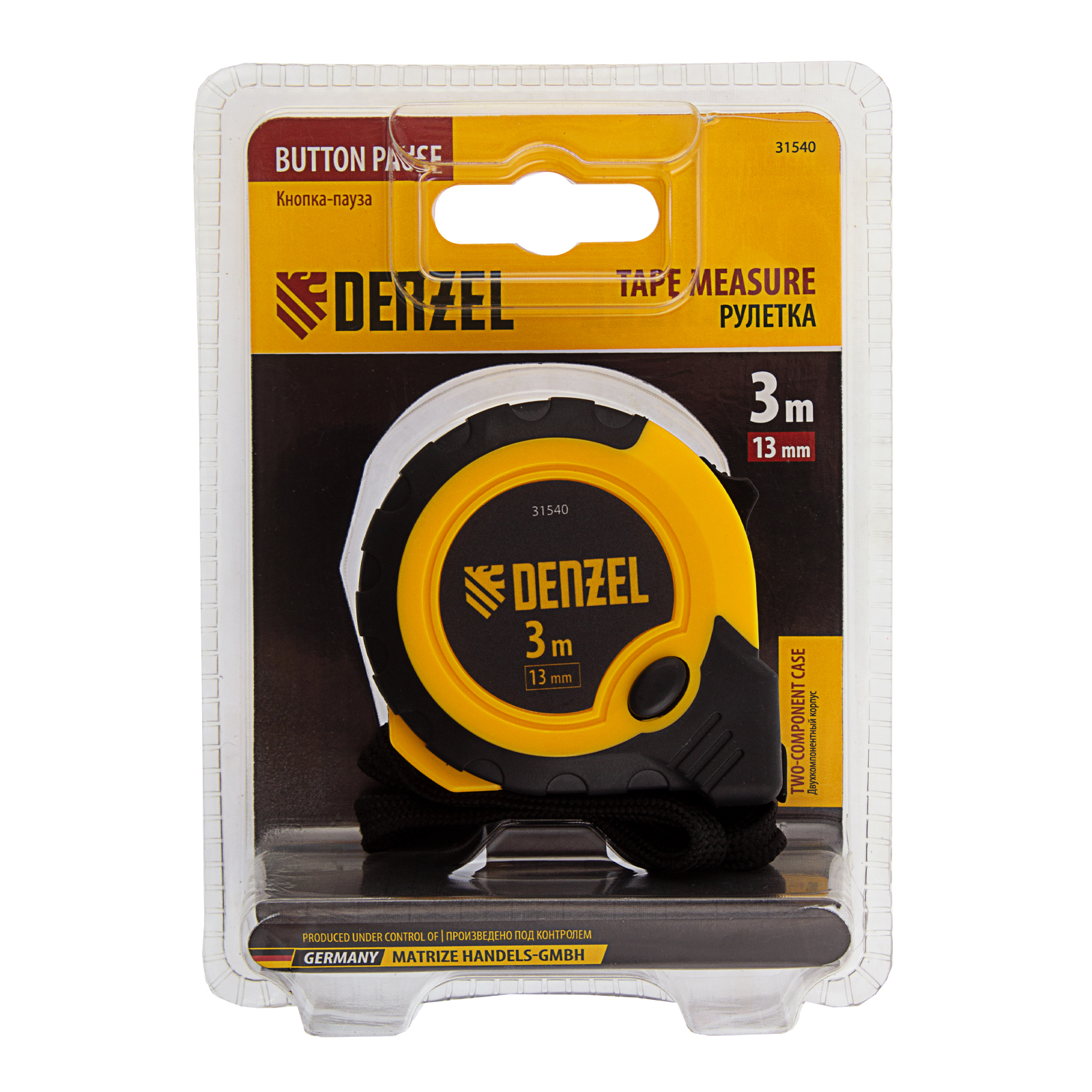 Рулетка 3м х 13мм, двухкомп. корпус, кнопка-пауза Denzel в Краснодаре