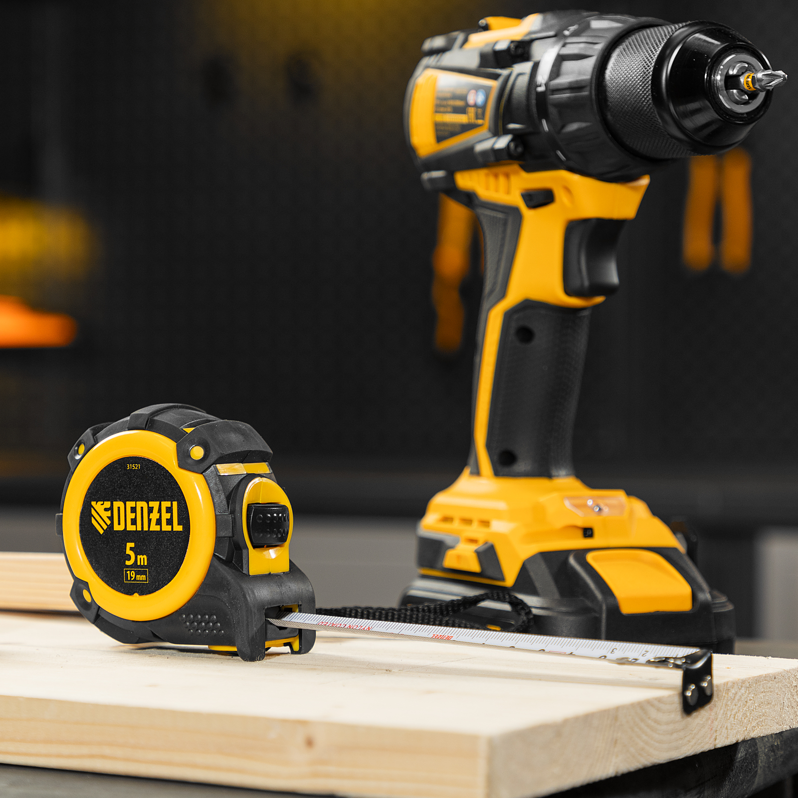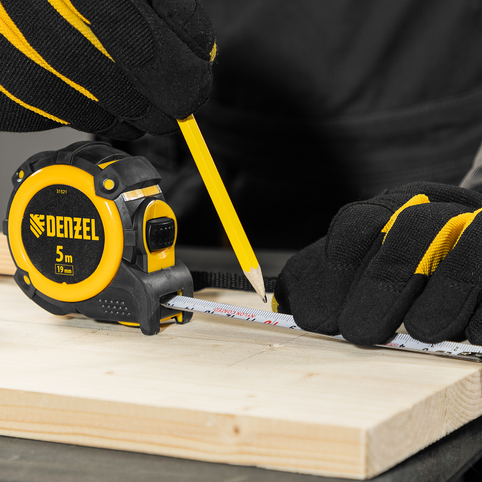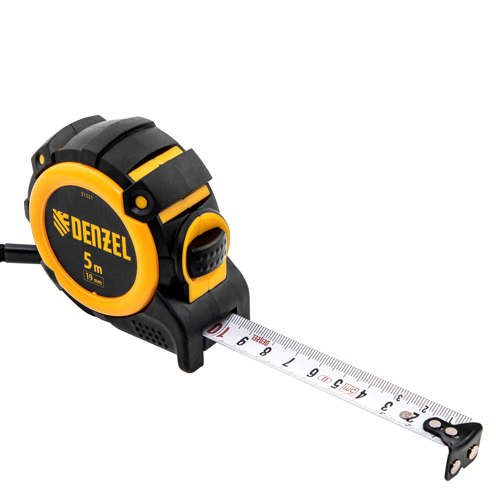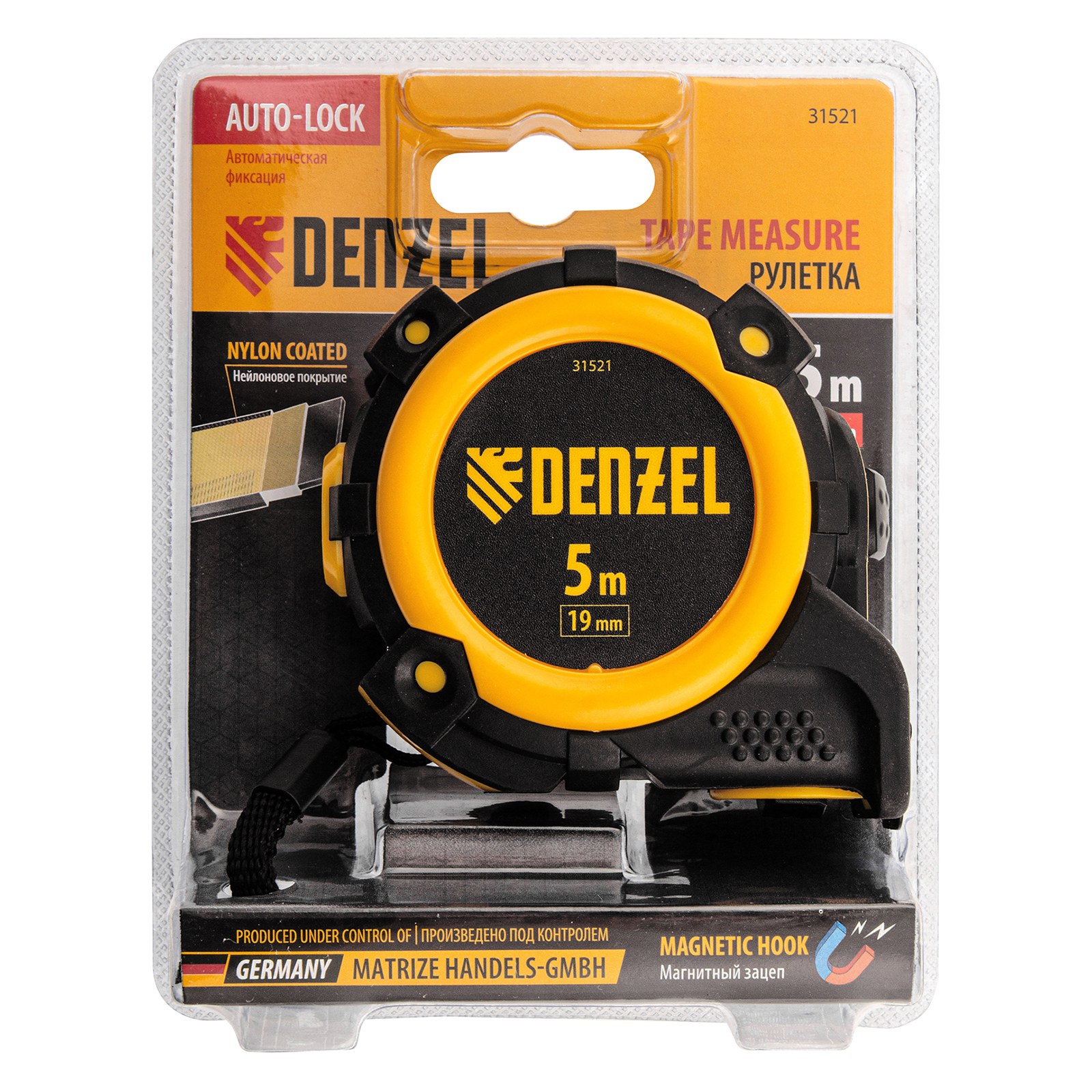 Рулетка 5м х 19мм, автоматич. фиксац., нейлон. покрытие, магнит. зацеп, двухстор. разметка Denzel в Краснодаре