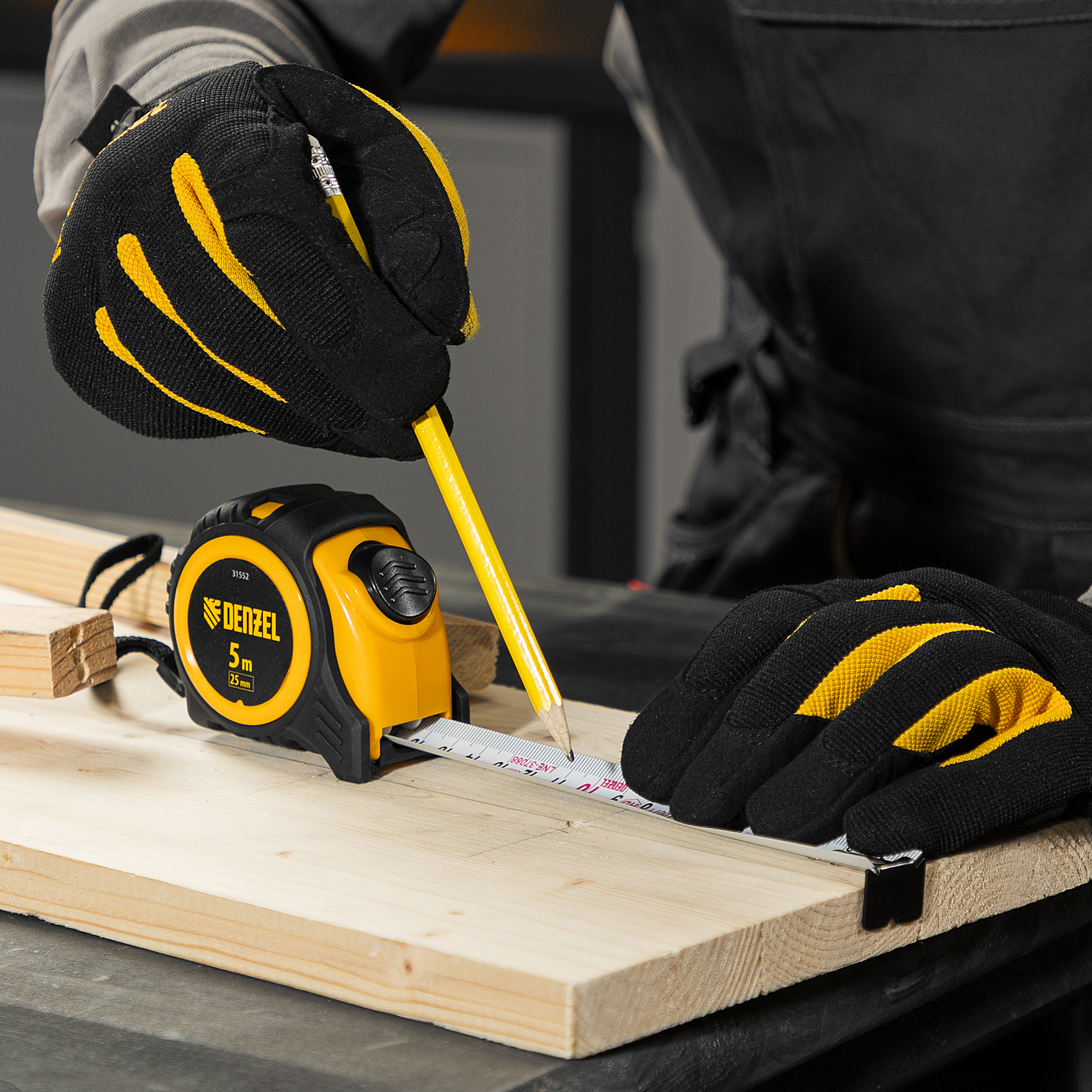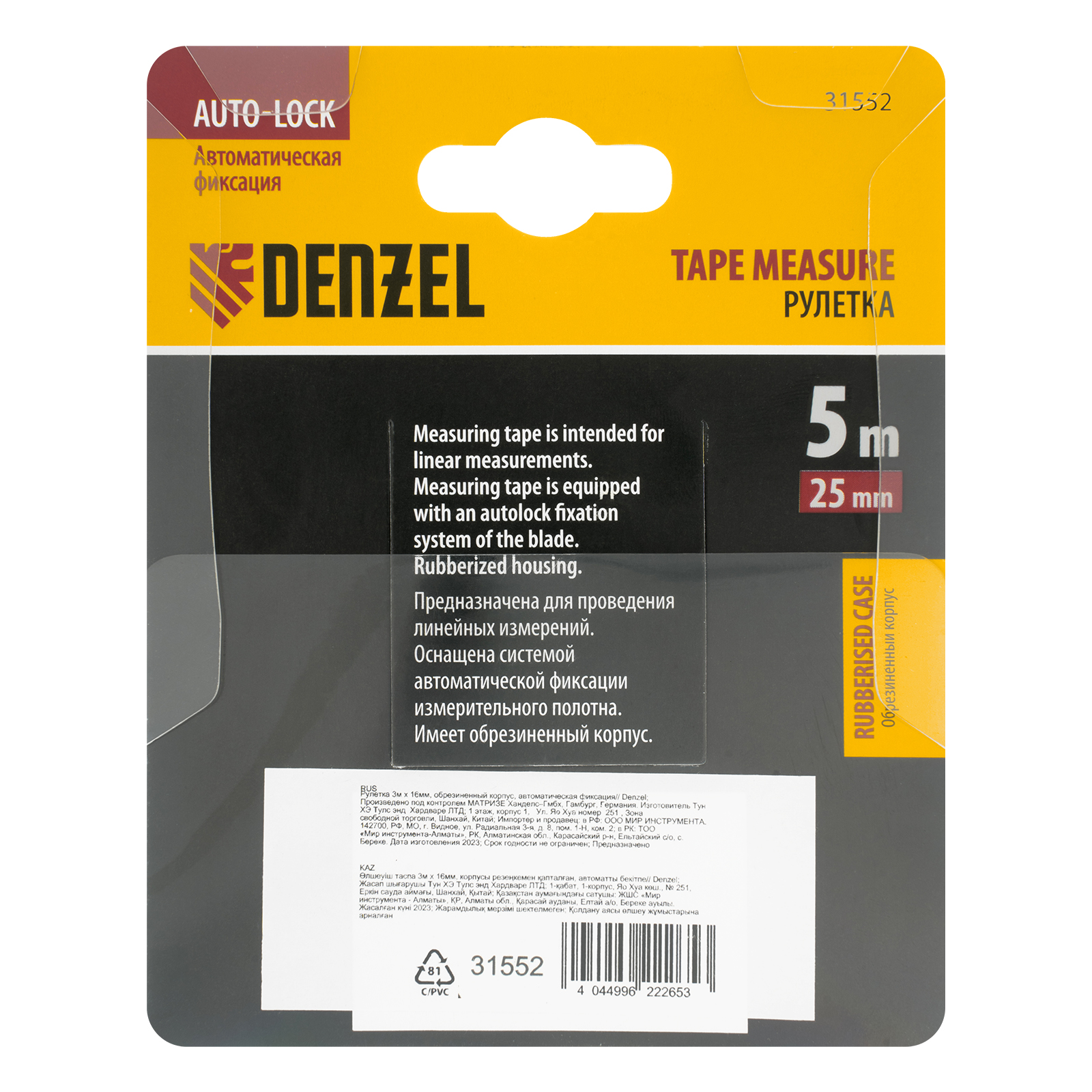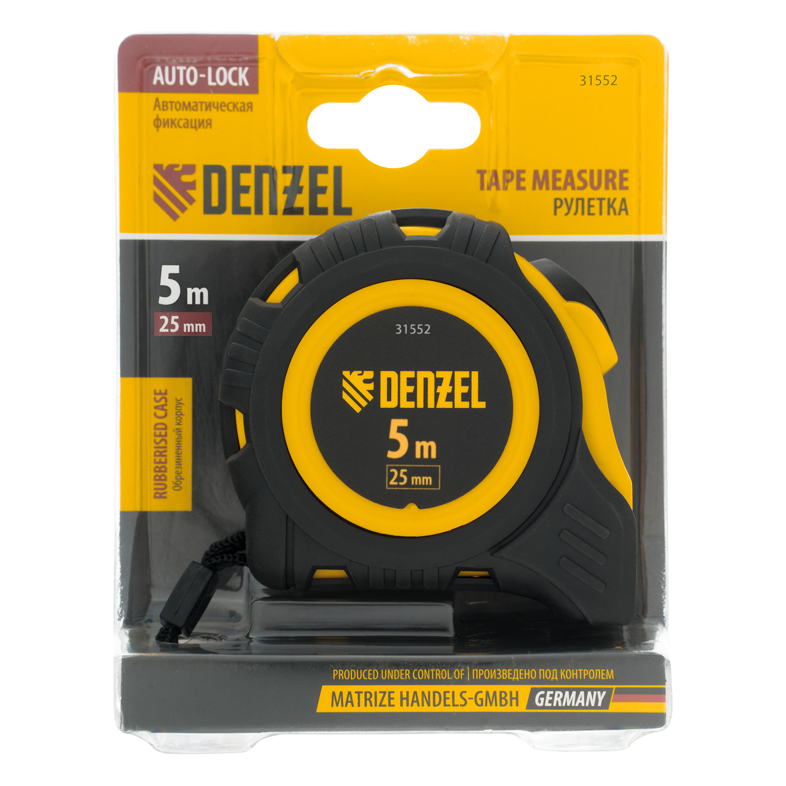 Рулетка 5м х 25мм, обрезиненный корпус, автоматическая фиксация Denzel в Краснодаре