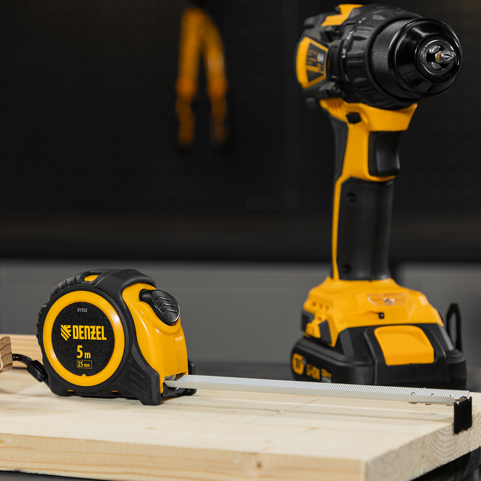 Рулетка Denzel 31552 в обрезиненном корпусе, с автоматической фиксацией, с полотном шириной 25 мм и длиной 5 м, используется для измерения расстояний и размеров предметов. Стальная лента с эмалевым покрытием и защитной пластиной в месте крепления зацепа рассчитана на долгий срок службы. Рулетка будет полезна во время строительства и ремонта, а также пригодится в быту.
