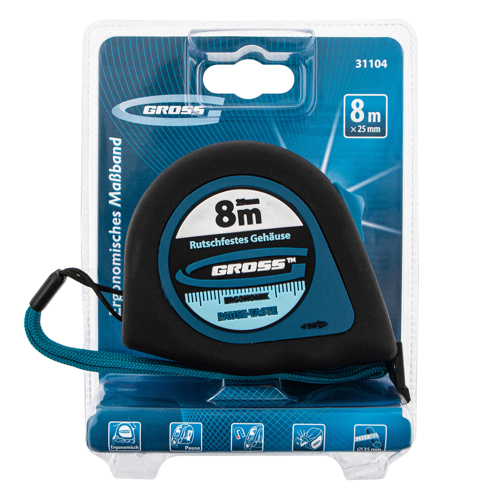 Рулетка Gross «Ergonomisch» 31104 с лентой 5 м х 25 мм и магнитным обрезиненным зацепом пригодится для проведения измерительных работ в хозяйстве и на строительной площадке. Обрезиненный магнитный зацеп надежно фиксируется на металлических поверхностях, а также на круглых и изогнутых предметах, например, трубах. Карманный инструмент удобно брать с собой на выездные работы.