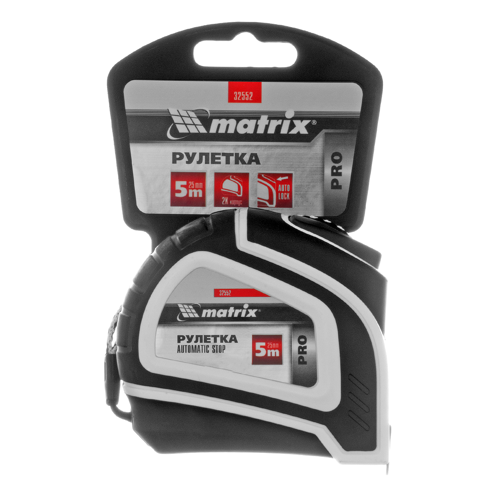Рулетка Autostop,5 м х 25 мм,двухкомпонентный корпус,автоматическая фиксация,Pro Matrix в Краснодаре
