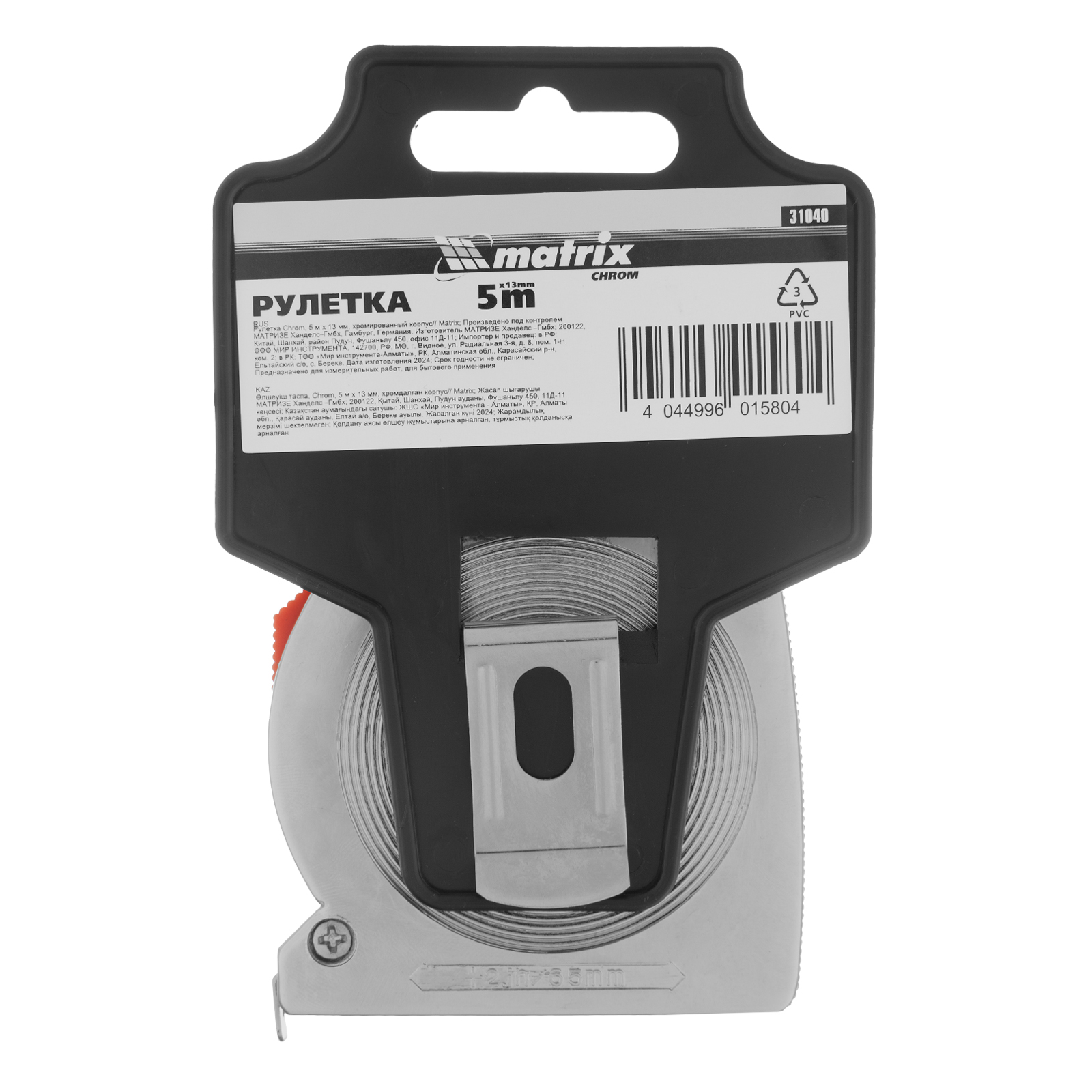 Рулетка Chrom,5 м x 13 мм,хромированный корпус Matrix в Краснодаре