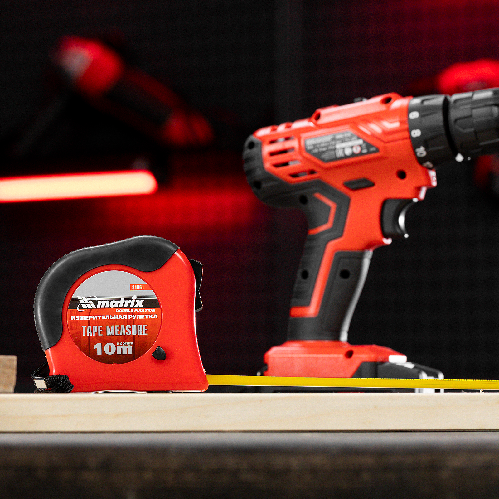 Рулетка Double fixation,10 м х 25 мм,обрезиненный корпус,двойная плавная фиксация Matrix в Краснодаре